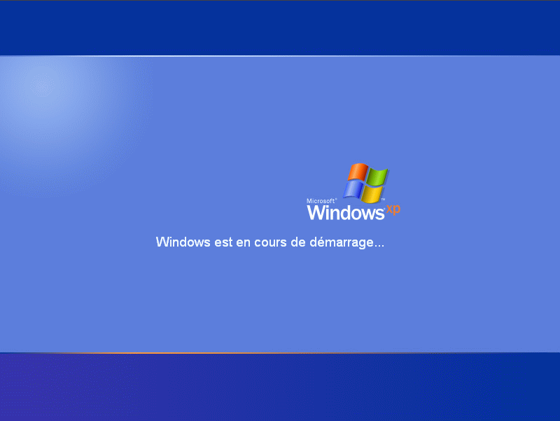 Si vous n'avez pas enfoncé la touche F8, afin de sélectionner le type de démarrage (Mode sans échec, mode sans échec avec réseau,...), alors le démarrage passe immédiatement à l'affichage d'une écran de progression fictive sans aucune information sur ce qu'il fait vraiment.