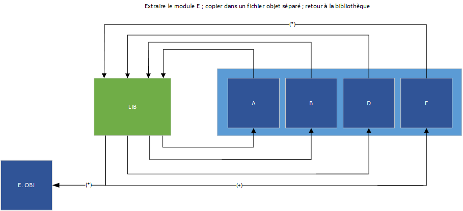 | * | L'astérisque suivi d'un nom de module extrait ce module du fichier de bibliothèque et le place dans un fichier objet séparé. (Même si le module est copié dans un fichier