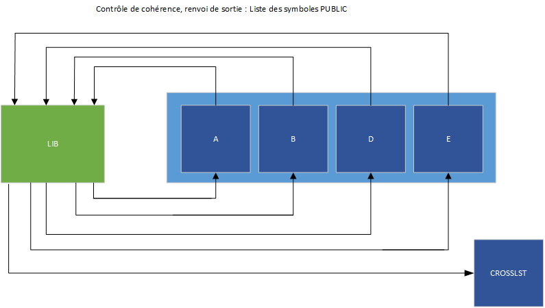 LIB effectue sa vérification de cohérence du fichier de bibliothèque et produit le fichier de liste de références croisées.
