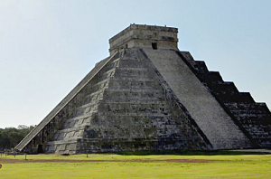 Le Temple de Kukulkan, pyramide à degrés située au centre de la cité, est un chef-d'oeuvre architectural illustrant le lien étroit entre les connaissances astronomiques des Mayas et leurs constructions monumentales. Son orientation et sa structure ont été conçues avec une précision remarquable : lors des équinoxes, un jeu d'ombres et de lumières donne l'illusion du mouvement d'un serpent descendant les marches du temple, un phénomène renforçant l'aspect sacré du monument et son association avec le dieu Kukulkan, la divinité serpent à plumes.