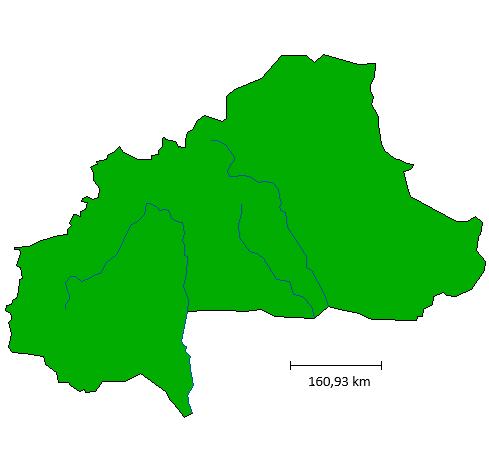 Le Burkina Faso est un pays d'Afrique de l'Ouest, enclavé et dépourvu d'accès à la mer. Il est entouré par six États : le Mali au nord et à l'ouest, le Niger à l'est, le Bénin au sud-est, ainsi que le Togo, le Ghana et la Côte d'Ivoire au sud. Avec une superficie d'environ 272 967 km2, il occupe une position centrale dans la région sahélienne. Son territoire se situe principalement sur un plateau d'une altitude moyenne comprise entre 200 et 400 mètres, ce qui explique la relative uniformité de son relief. Le climat est tropical de type soudano-sahélien, caractérisé par une alternance entre une saison des pluies courte, de juin à septembre, et une saison sèche plus longue, marquée par l'harmattan, un vent sec et poussiéreux venu du Sahara. Cette configuration géographique rend le pays particulièrement vulnérable à la sécheresse et à la variabilité climatique.