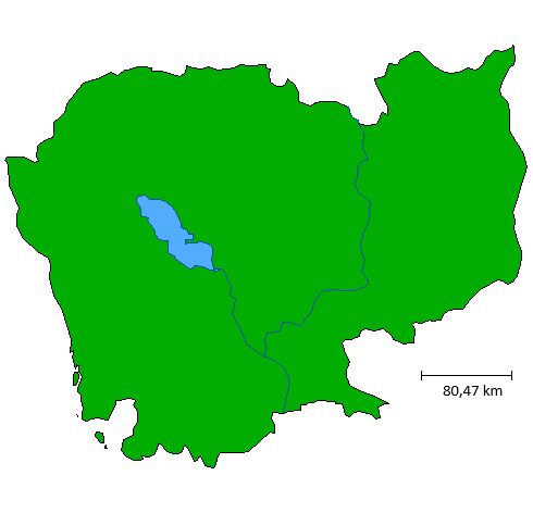 Le Cambodge est un pays d'Asie du Sud-Est situé dans la péninsule indochinoise. Il est bordé par la Thaïlande à l'ouest et au nord-ouest, le Laos au nord, le Vietnam à l'est et au sud-est, et possède également une ouverture maritime sur le golfe de Thaïlande au sud-ouest. Sa superficie est d'environ 181 000 km2, ce qui en fait un État de taille moyenne dans la région. Le pays se trouve au cour d'une zone tropicale, ce qui influence fortement son climat et sa végétation. L'une des caractéristiques géographiques majeures du Cambodge est sa position centrale dans le bassin du Mékong, un des plus grands fleuves d'Asie, qui traverse le pays du nord au sud et structure son économie et son environnement naturel. Cette situation confère au Cambodge un rôle géopolitique et écologique important dans la région.