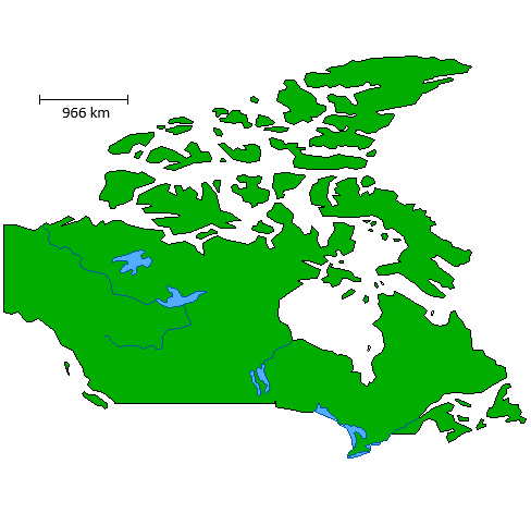 Le Canada est un pays situé entre les États-Unis, la Russie et le Groenland au nord de l'Amérique du Nord. Sa superficie totale dépasse les neuf millions de kilomètres carrés, ce qui en fait le deuxième plus vaste pays du monde après la Russie. Ce territoire immense englobe une diversité impressionnante de paysages allant des montagnes Rocheuses aux plaines centrales, en passant par de vastes forêts boréales et l'Arctique gelé. La majeure partie de son territoire n'est pas habité, car de vastes étendues de toundra, de forêts ou de zones montagneuses rendent l'occupation humaine difficile. En conséquence, la population se concentre surtout à proximité de la frontière sud avec les États-Unis. Cette zone bénéficie d'un climat plus clément et offre des conditions propices à l'agriculture, à l'urbanisation et au développement économique.