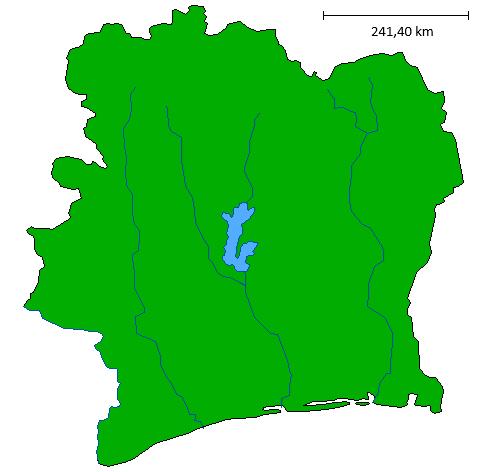 La Côte d'Ivoire est un pays d'Afrique de l'Ouest situé sur le littoral de l'océan Atlantique, dans le golfe de Guinée. Elle partage ses frontières avec le Libéria et la Guinée à l'ouest, le Mali et le Burkina Faso au nord, le Ghana à l'est, et bénéficie d'une façade maritime de près de 500 km au sud. Sa superficie est d'environ 322 000 km2, ce qui en fait l'un des plus grands pays côtiers de la région. La capitale politique est Yamoussoukro, tandis que la capitale économique et la plus grande ville est Abidjan, située sur le littoral. Sa position géographique lui confère un rôle central dans les échanges régionaux, notamment grâce à ses ports qui facilitent les relations commerciales avec le reste du monde.