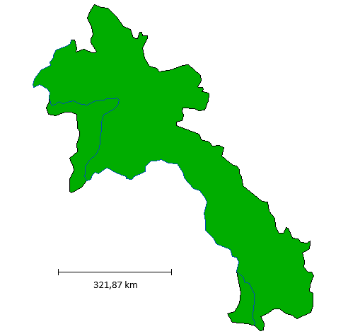 Le Laos, officiellement appelé République démocratique populaire lao, est un pays enclavé situé en Asie du Sud-Est, bordé par la Chine au nord, le Vietnam à l'est, le Cambodge au sud, la Thaïlande à l'ouest et le Myanmar au nord-ouest. Sa superficie totale est d'environ 236 800 km2, dont une petite fraction est constituée de lacs et cours d'eau, représentant environ 2 % de sa surface totale. La capitale, Vientiane, est située sur la rive gauche du Mékong, qui forme une large partie de la frontière avec la Thaïlande. Le pays se caractérise par une géographie montagneuse et accidentée, ponctuée de plateaux et de vallées fluviales, avec très peu de plaines côtières en raison de son enclavement. Cette configuration influence fortement le climat, la végétation et la répartition de la population, qui est majoritairement concentrée le long des cours d'eau.