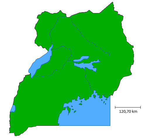 L'Ouganda est un pays enclavé d'Afrique de l'Est, situé au cour du bassin du Nil. Il partage ses frontières avec le Soudan du Sud au nord, le Kenya à l'est, la Tanzanie et le Rwanda au sud, et la République démocratique du Congo à l'ouest. Sa superficie est d'environ 241 000 km², et le pays présente une géographie très variée malgré sa taille relativement modeste. L'Ouganda est traversé par le Nil, qui prend sa source dans le lac Victoria, le plus grand lac d'Afrique et le deuxième plus grand lac d'eau douce au monde. Ce réseau hydrographique dense façonne le paysage et soutient l'agriculture, l'énergie hydroélectrique et la biodiversité. La capitale, Kampala, se situe sur la rive nord du lac Victoria et constitue le centre économique et politique du pays.