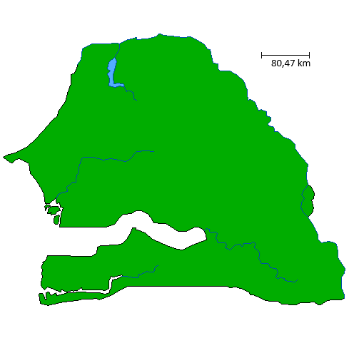 Le Sénégal est un pays d'Afrique de l'Ouest situé à l'extrémité occidentale du continent, ouvert sur l'océan Atlantique par une longue façade maritime de plus de 500 kilomètres. Il couvre une superficie d'environ 196 722 km2 et partage ses frontières terrestres avec la Mauritanie au nord, le Mali à l'est, ainsi qu'avec la Guinée et la Guinée-Bissau au sud. De plus, le pays entoure presque entièrement la Gambie, formant ainsi une enclave le long du fleuve Gambie. La capitale, Dakar, est située sur la presqu'île du Cap-Vert, le point le plus occidental du continent africain, ce qui confère au pays une position géostratégique importante sur les routes maritimes internationales.