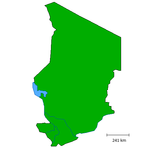 Un élément géographique majeur du Tchad est le lac Tchad, situé à l'ouest du pays et partagé avec le Nigeria, le Niger et le Cameroun. Bien qu'il soit l'une des plus grandes étendues d'eau douce d'Afrique, sa superficie a considérablement diminué au cours des dernières décennies en raison de la sécheresse et de l'exploitation humaine. Ce lac reste pourtant vital pour des millions de personnes qui dépendent de ses ressources en eau pour la pêche, l'agriculture et l'élevage. Le réseau hydrographique du pays est par ailleurs limité, mais le Chari et le Logone, deux fleuves importants, alimentent le lac Tchad. Ainsi, malgré ses conditions naturelles contraignantes, le pays se distingue par une géographie contrastée, allant des déserts arides du nord aux savanes fertiles du sud, avec une ressource en eau stratégique au centre-ouest.