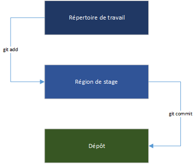 Le Git a un flux de travail pouvant être résumé comme suit (et pouvant être représenté à l'aide du schéma précédent) :