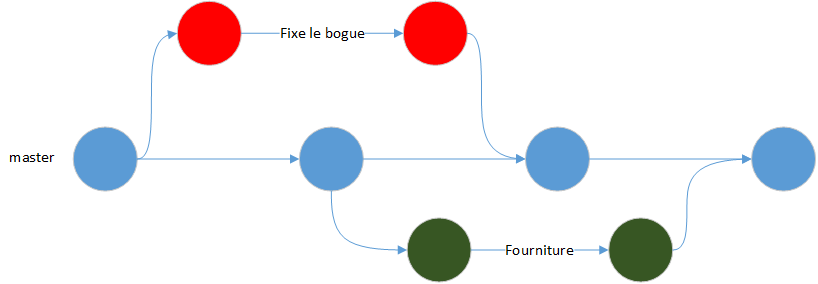 Si un bogue grave se produit en production, ce flux indique que vous pouvez créer une branche de correctif à partir du master, corriger le bogue, puis fusionner à nouveau directement cette branche dans le master. Vous pouvez également le fusionner dans la branche release si elle est présente, ou développer dans le cas contraire. Si vous avez fusionné le code dans la branche release, la branche develop aura le correctif lorsque vous fusionnerez la branche release.