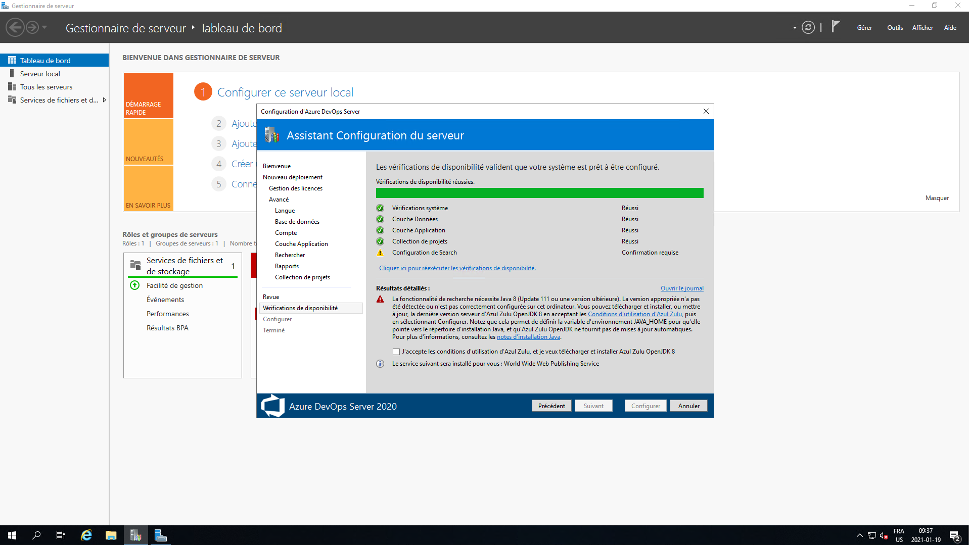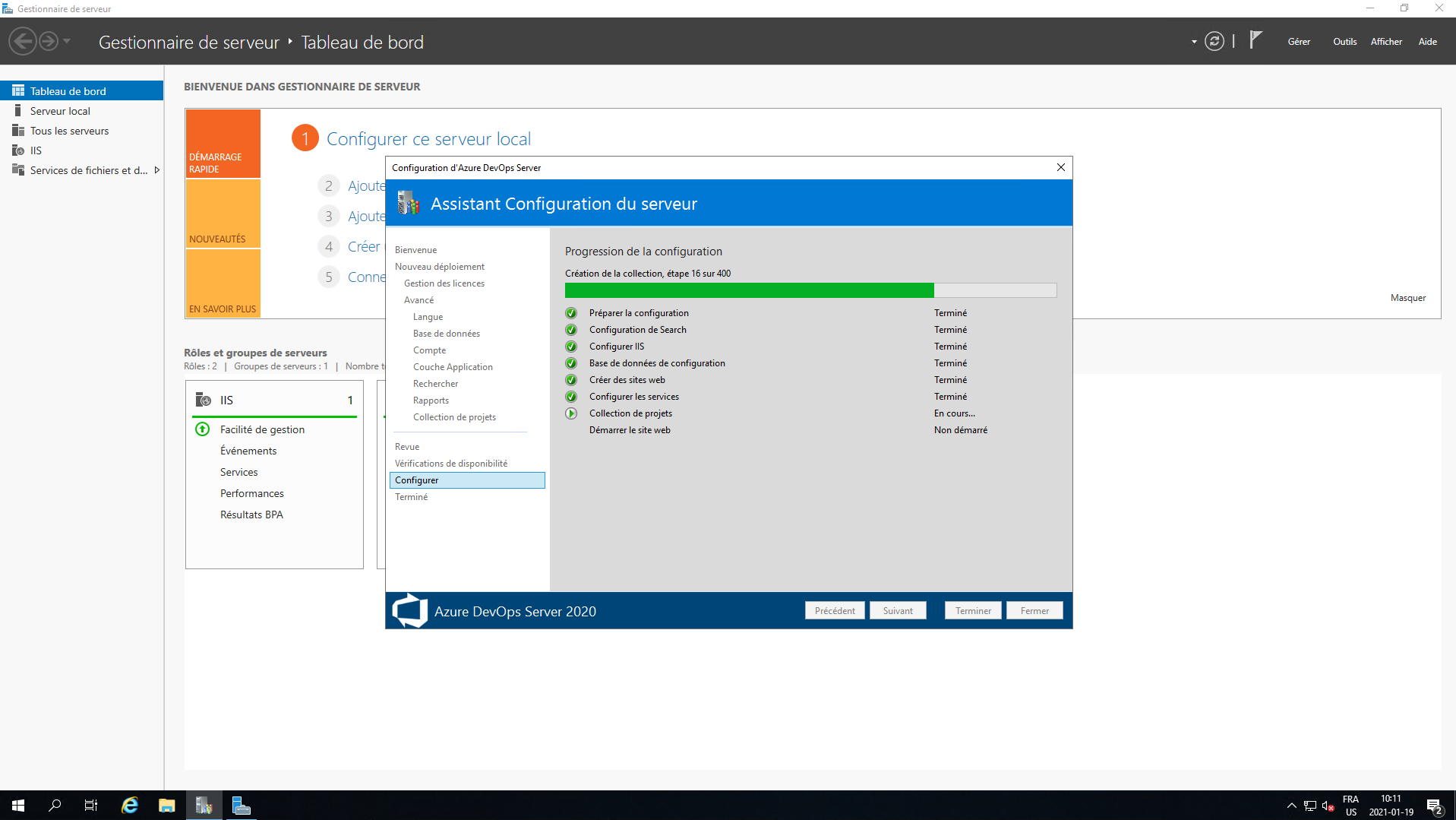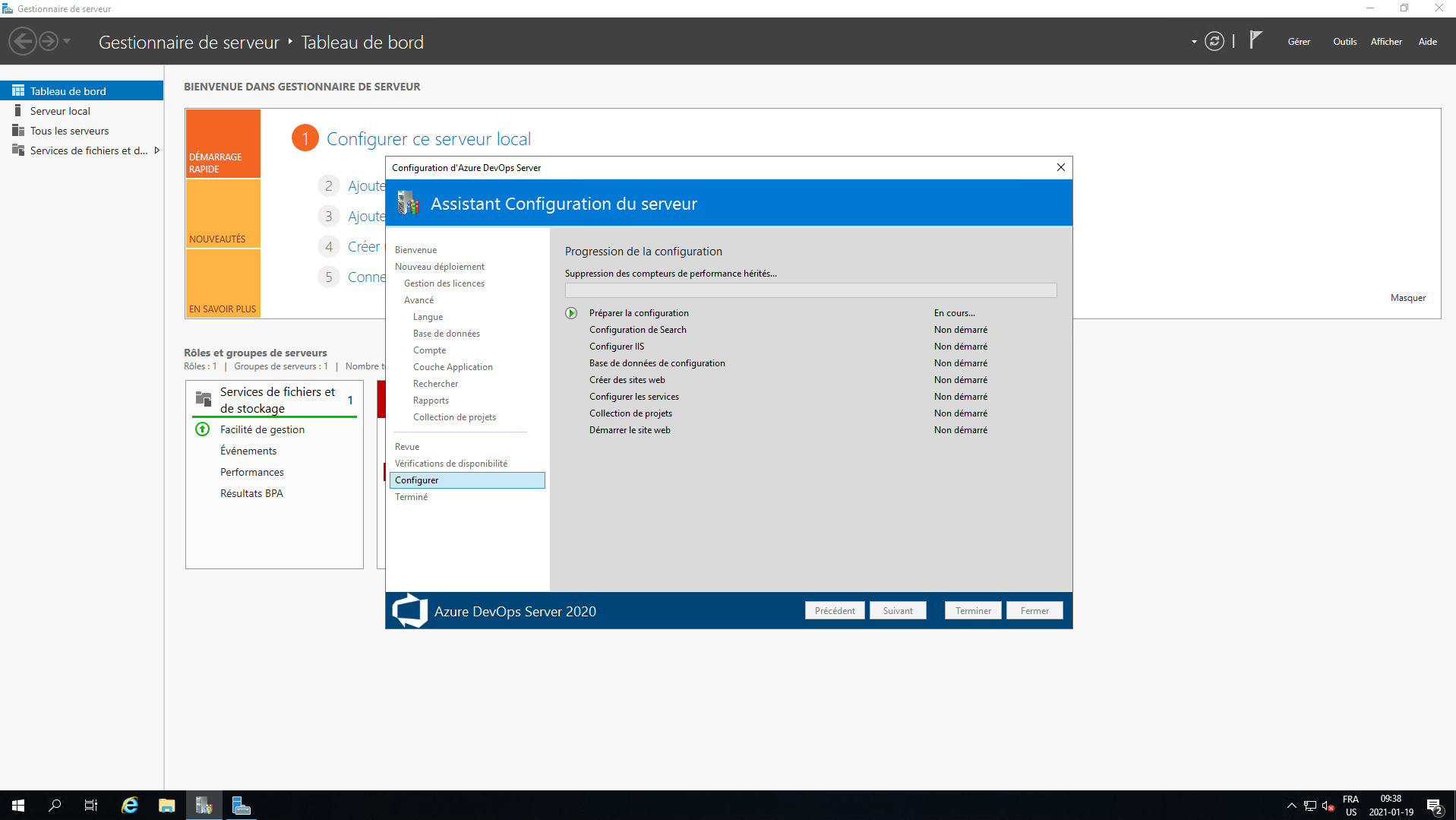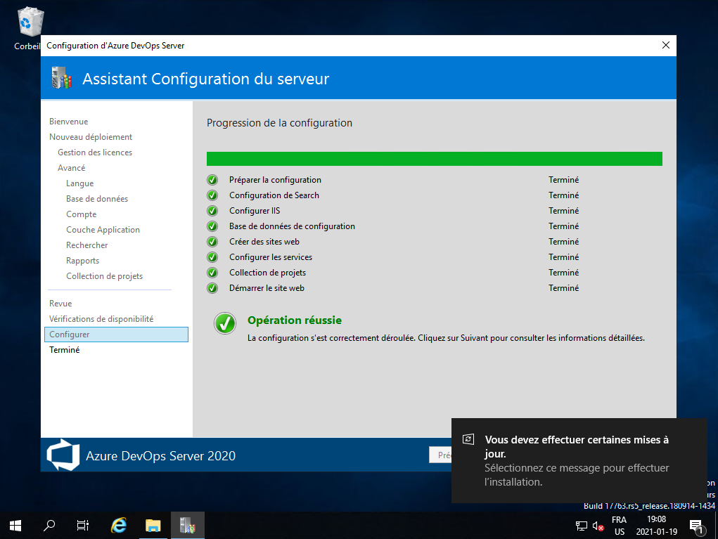 Il commence à installer Azure DevOps Server 2020, vous le laissez continuer :