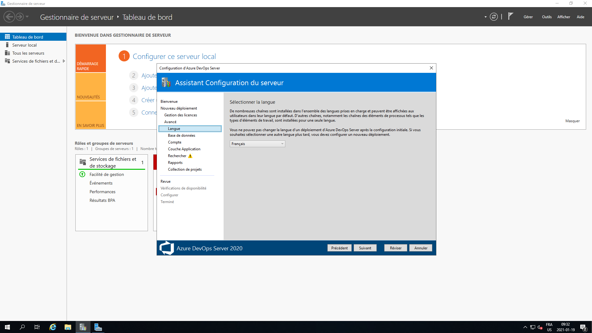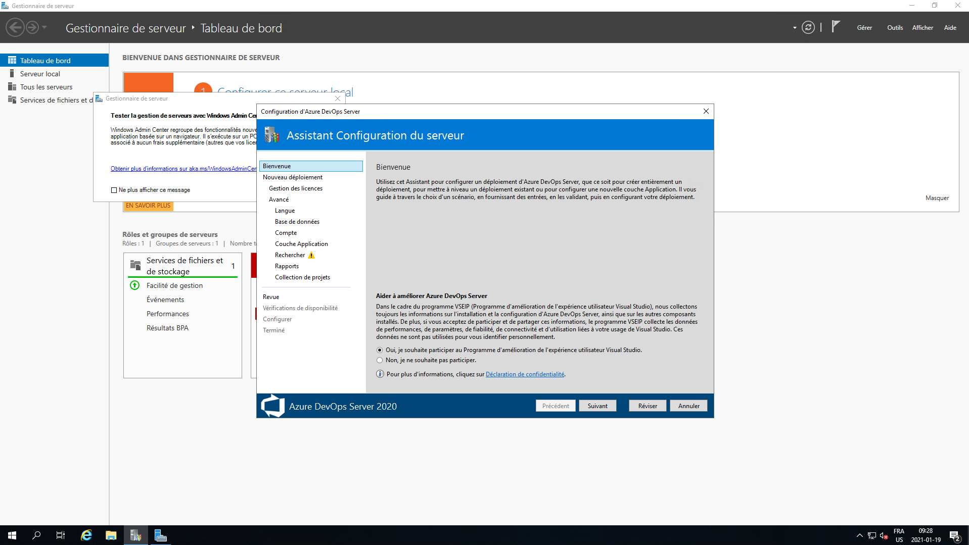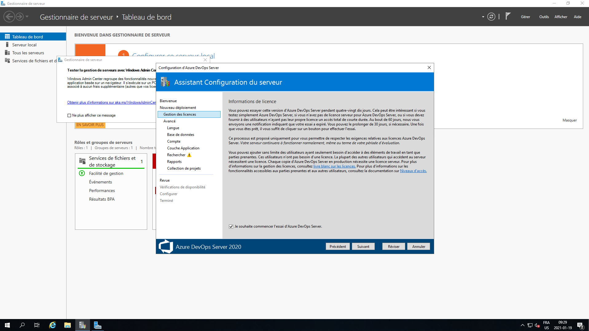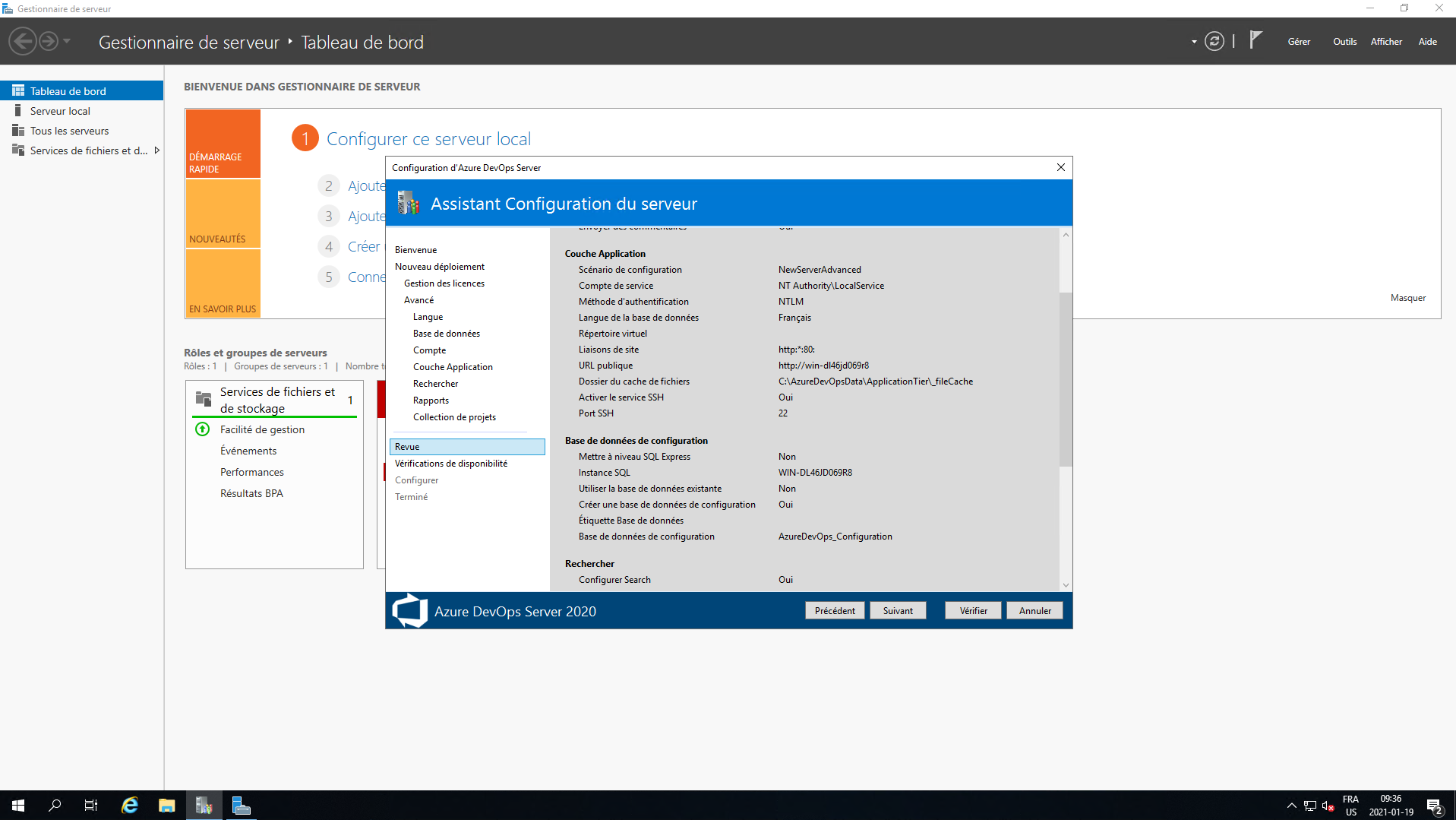 Il commence à installer Azure DevOps Server 2020, vous le laissez continuer :