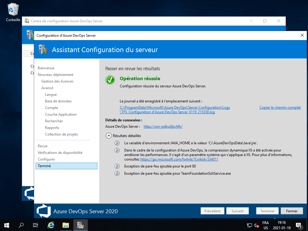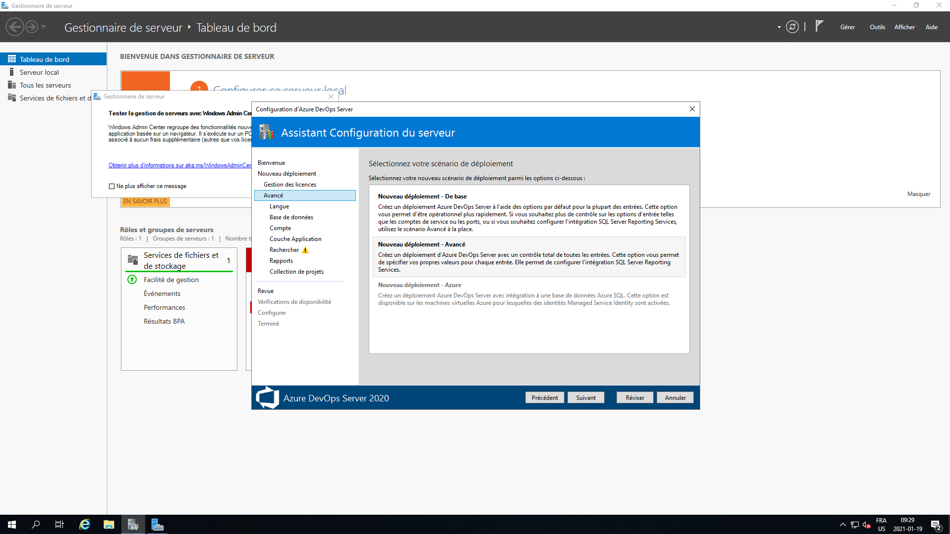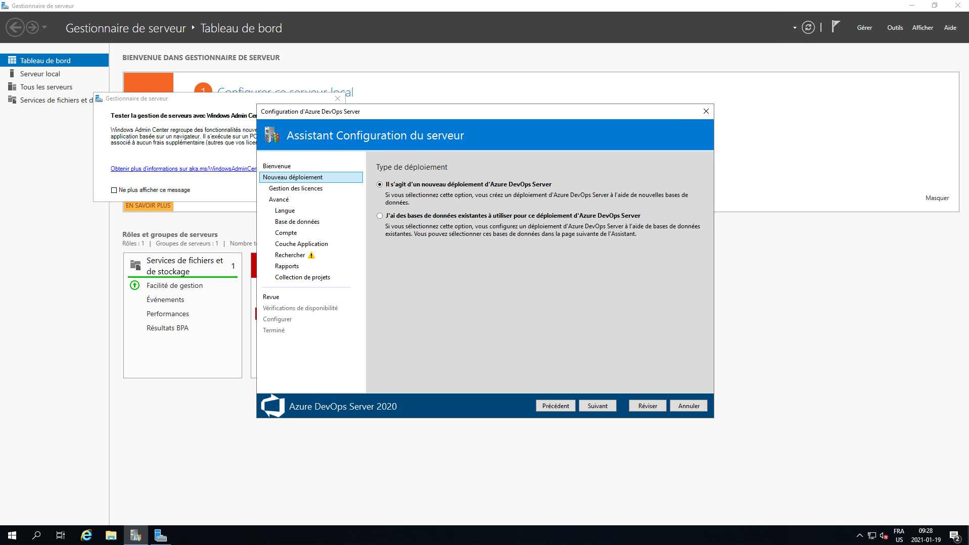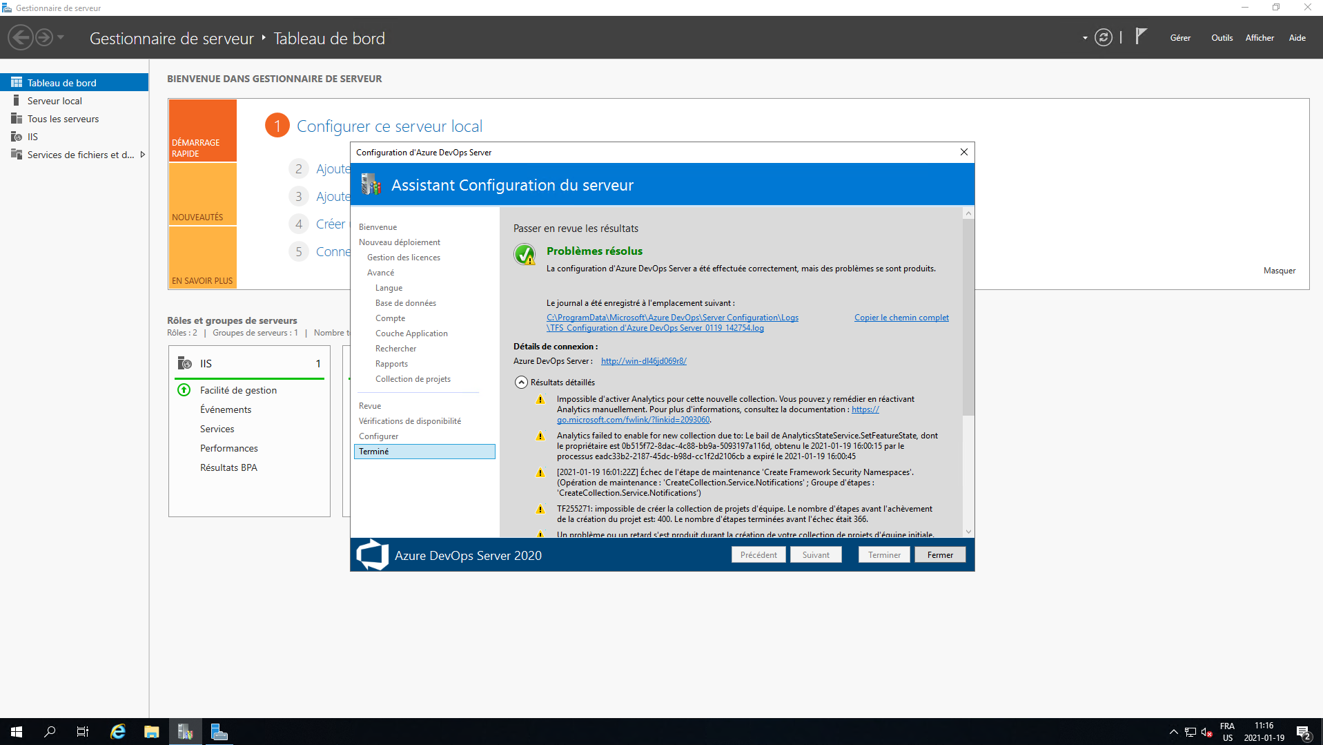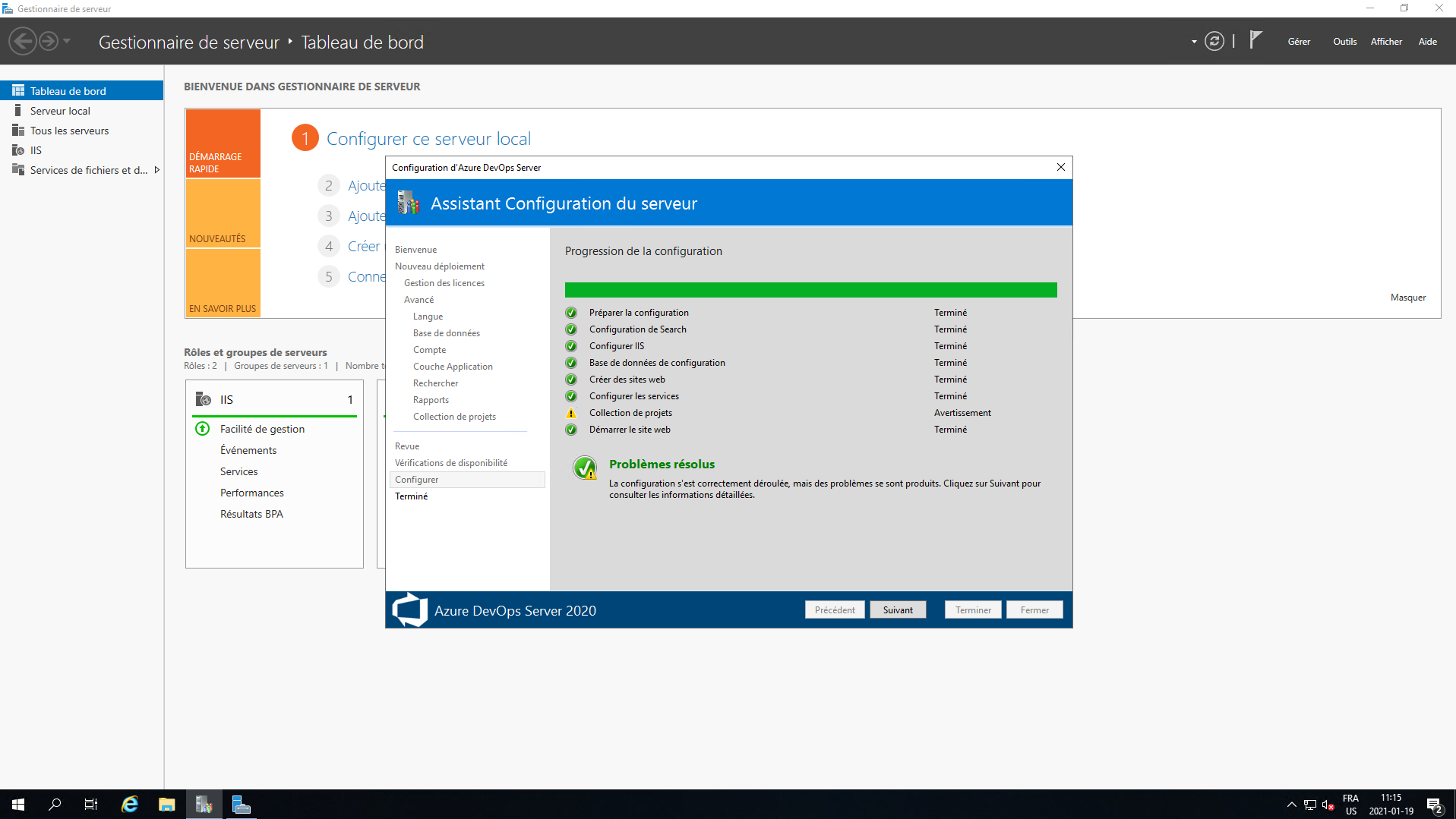 Il commence à installer Azure DevOps Server 2020, vous le laissez continuer :