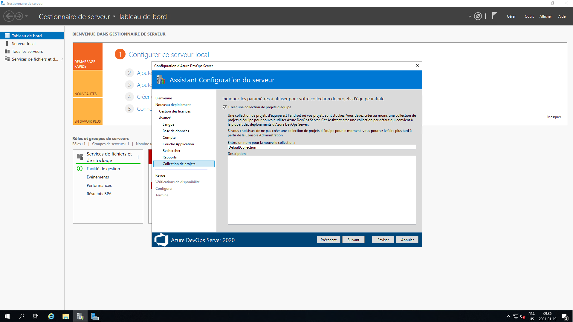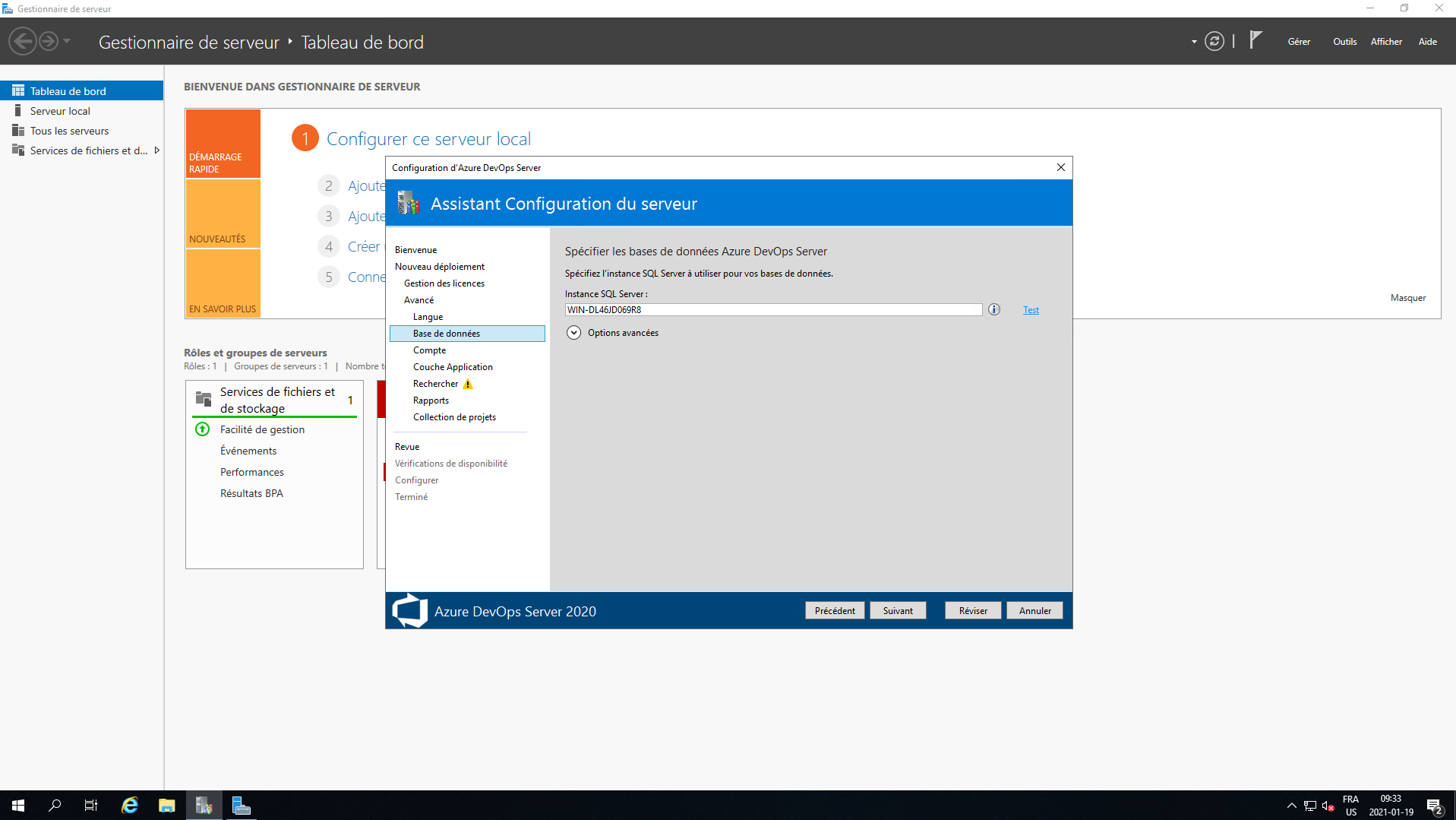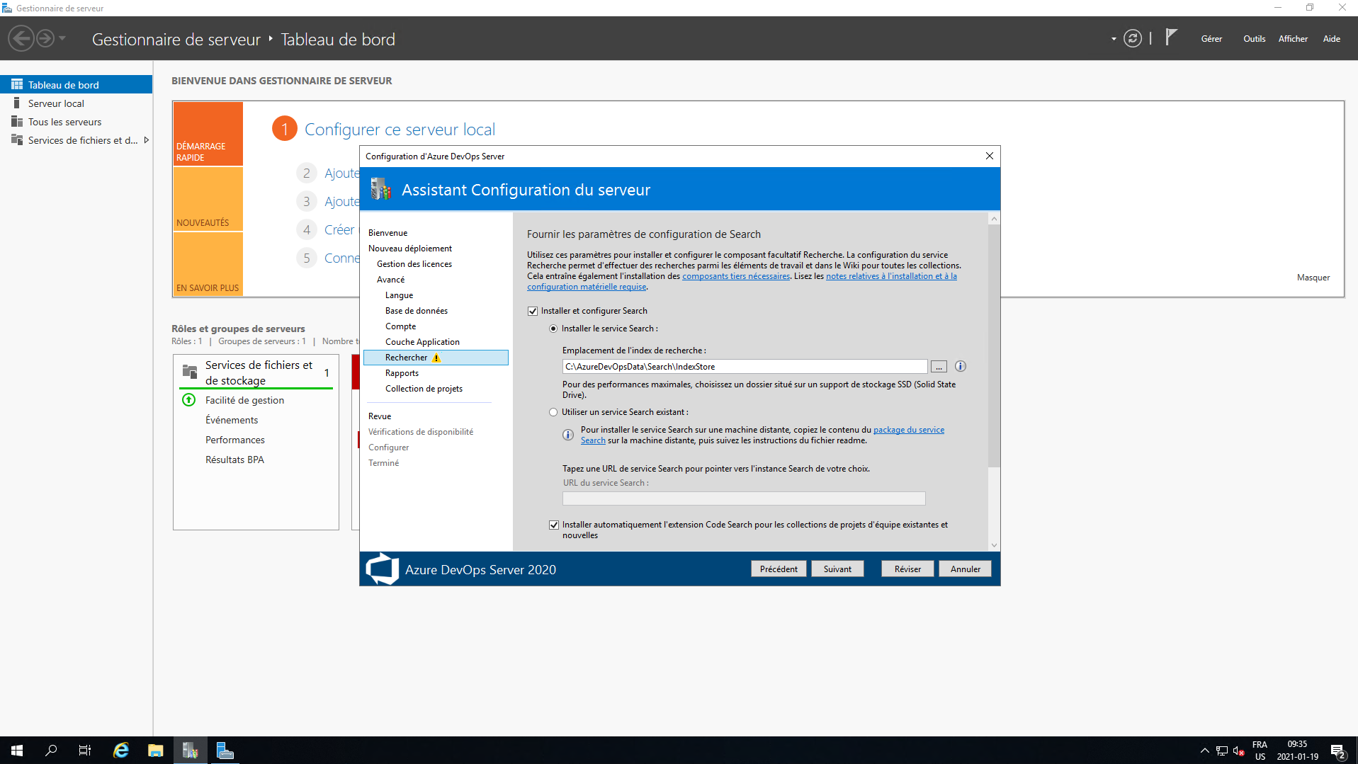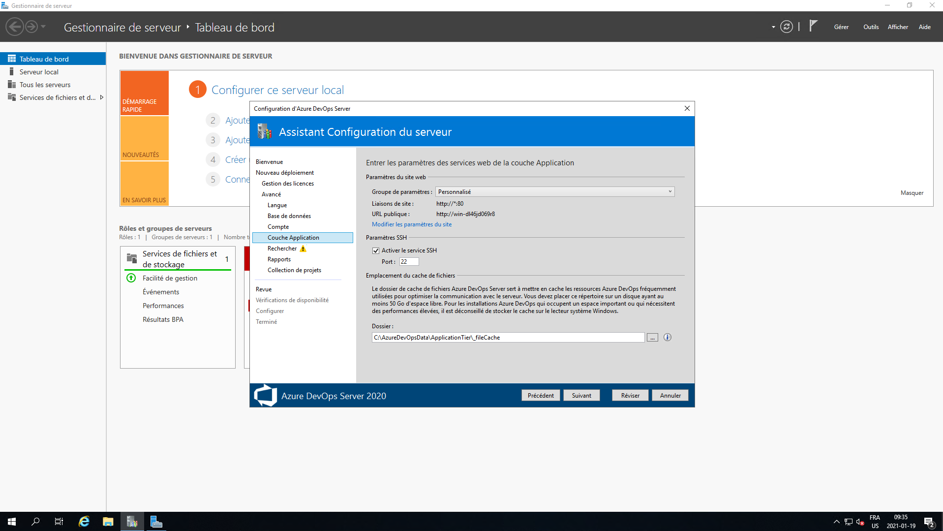 Il commence à installer Azure DevOps Server 2020, vous le laissez continuer :