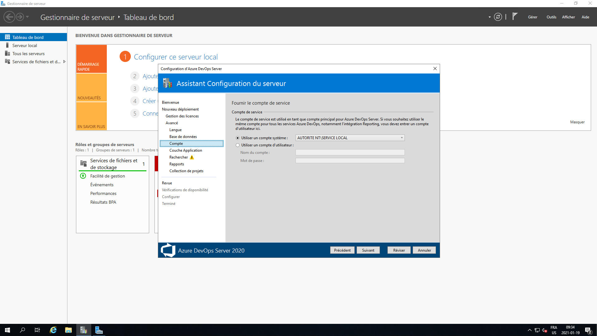 Il vous indique le compte qu'il va utiliser pour communiquer avec Azure DevOps Server, et vous cliquez sur Suivant :