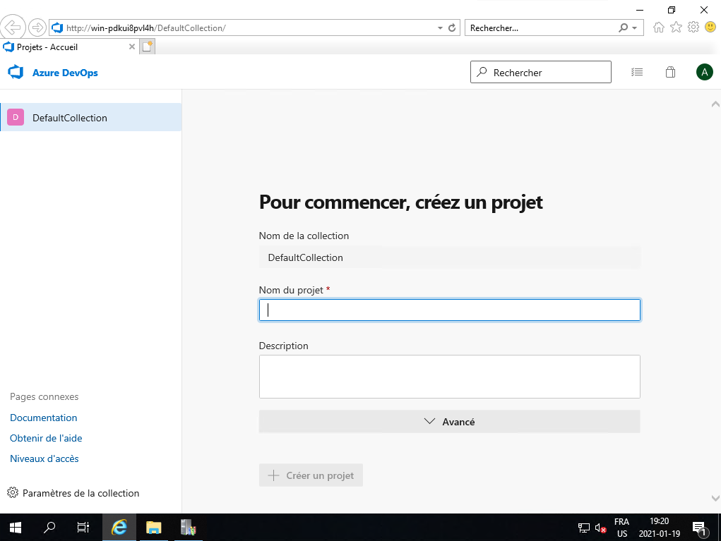 Vous accédez au site Web d'Azure DevOps Server 2020 :