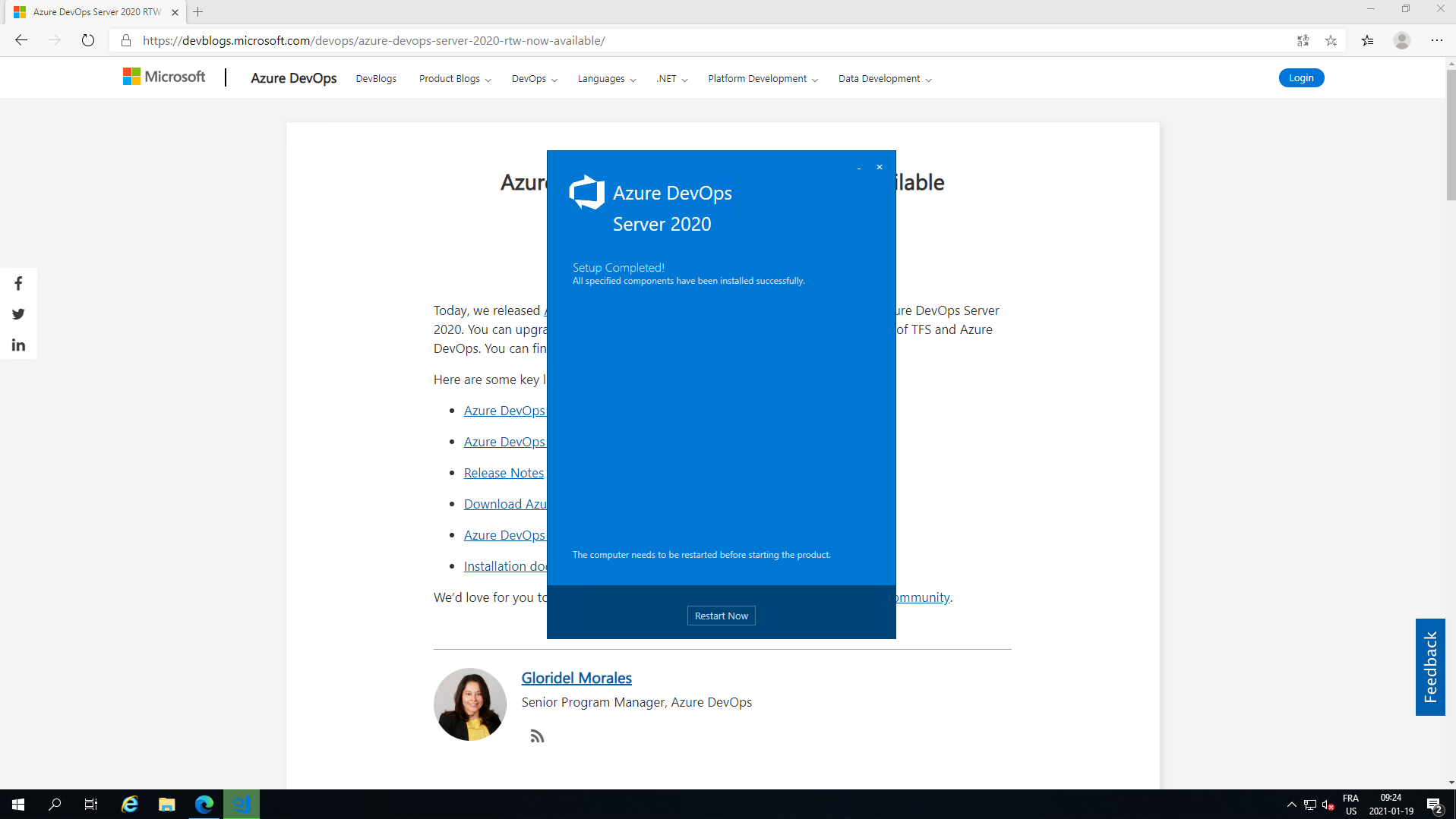 Une fois l'installation terminé. Il faut redémarrer. Vous cliquez sur le bouton Restart Now
