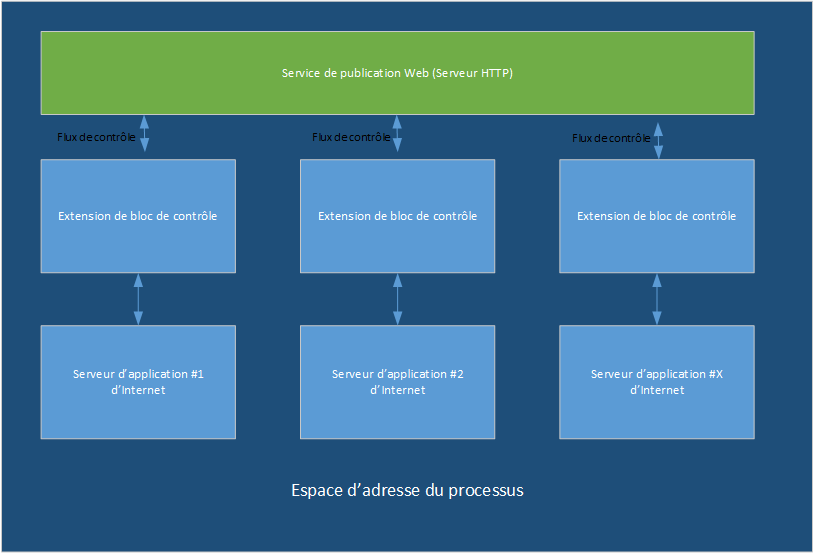 - Plutôt que de s'exécuter en tant qu'application externe dans un processus distinct, une application ISAPI est une application Windows NT native s'exécutant dans le même espace d'adressage que le serveur HTTP. Il est possible car l'application ISAPI est une bibliothèque de liens dynamiques plutôt qu'un programme externe et qu'elle s'exécute en tant que partie intégrante du serveur HTTP.