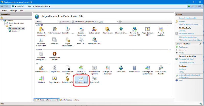 - Les modifications qu'apportera URL Rewrite se retrouveront dans la section configuration/system.webServer/rewrite du fichier web.config.
