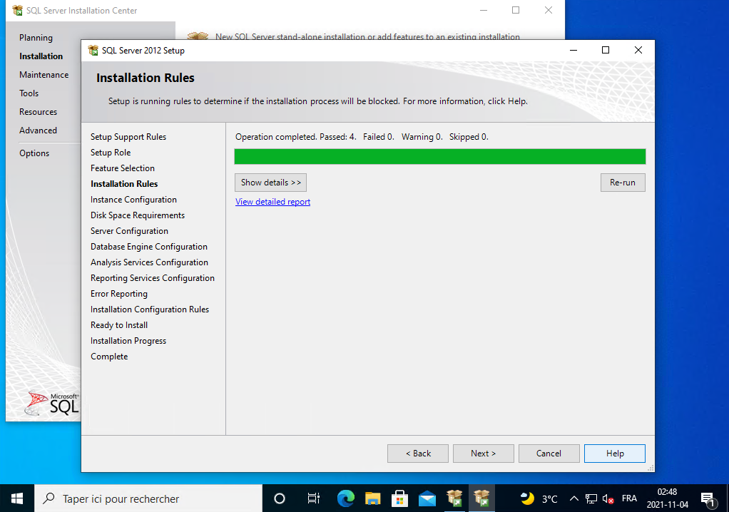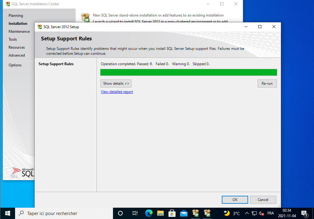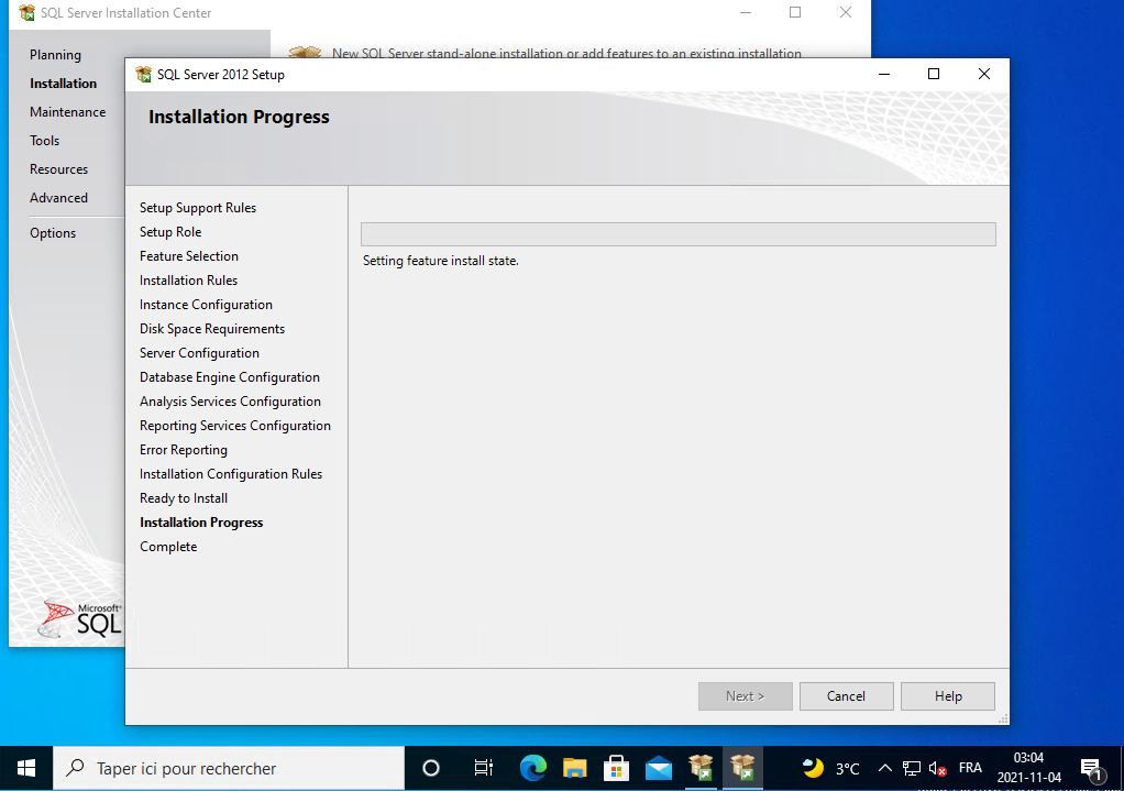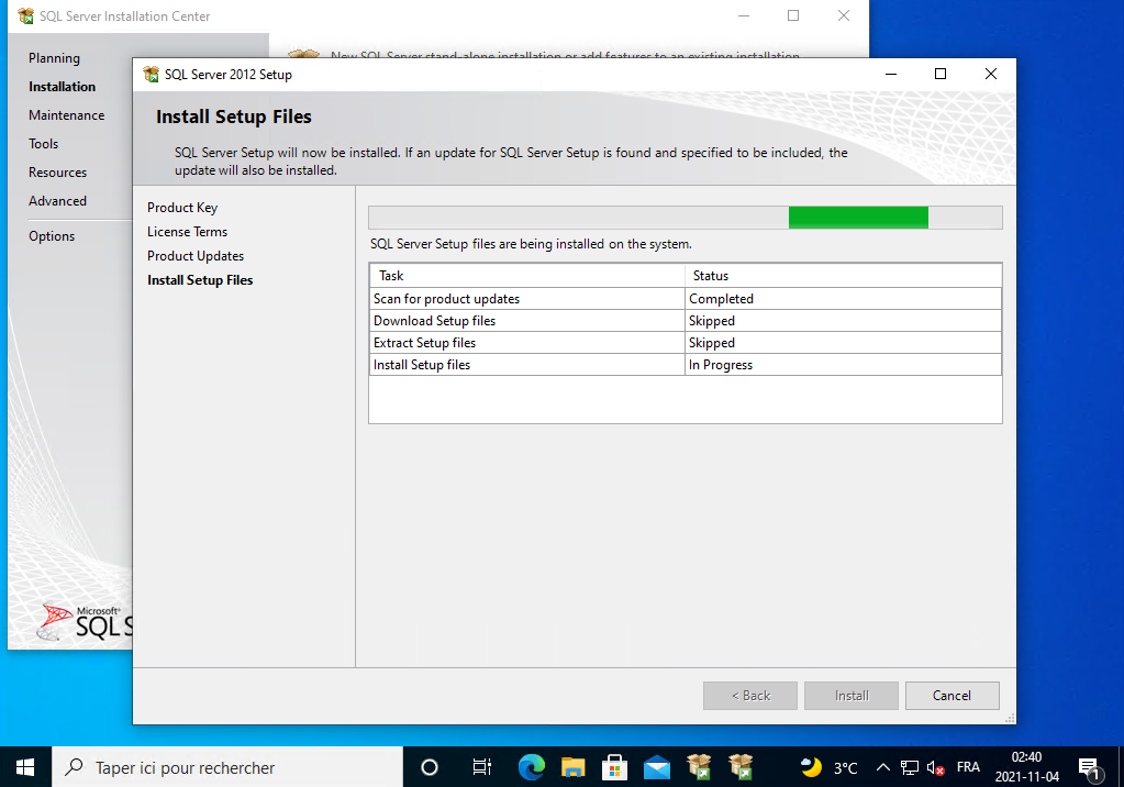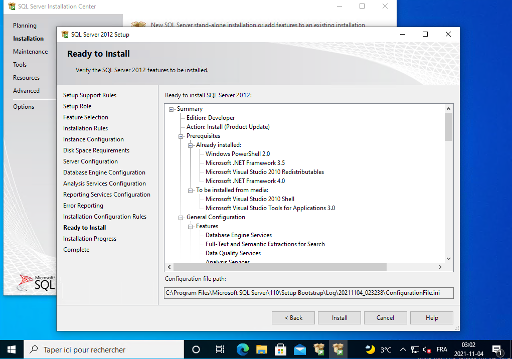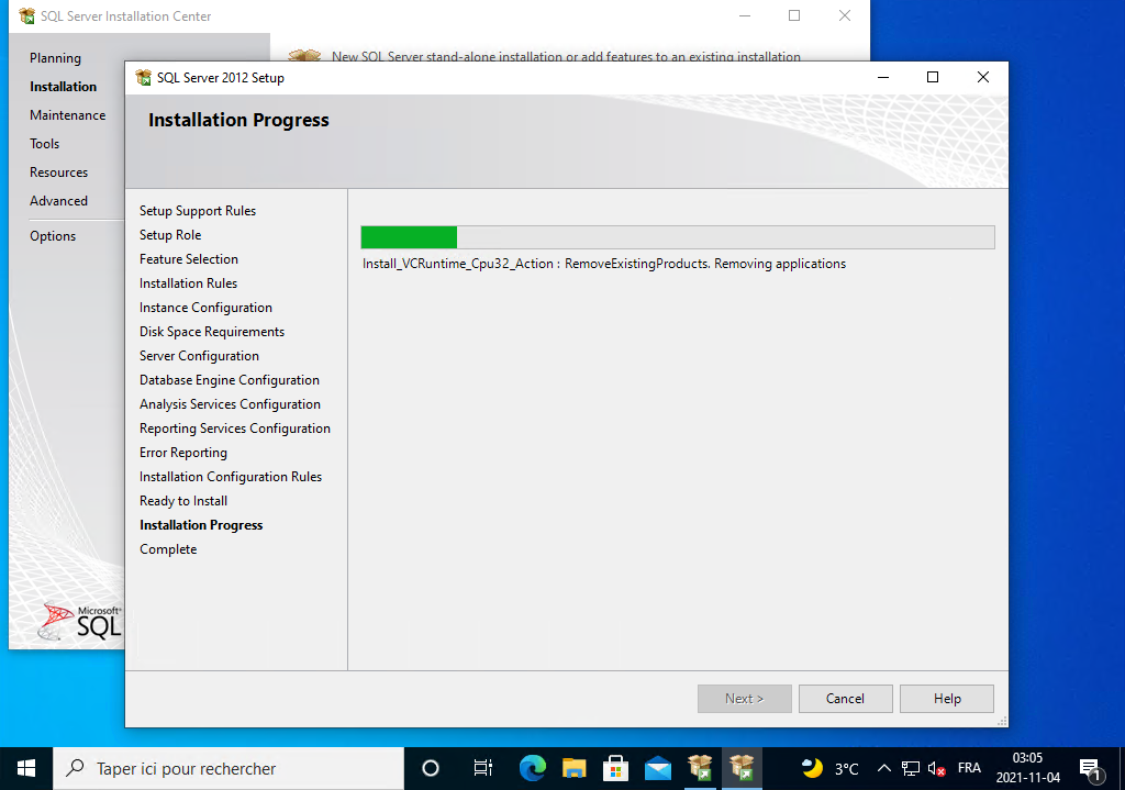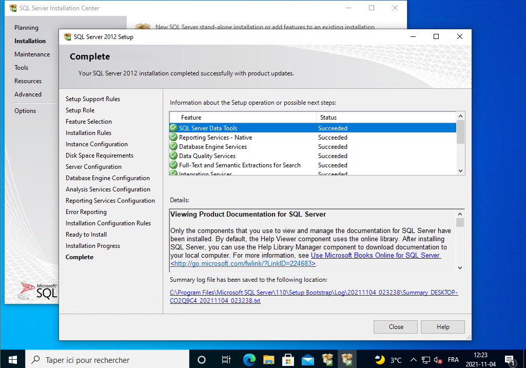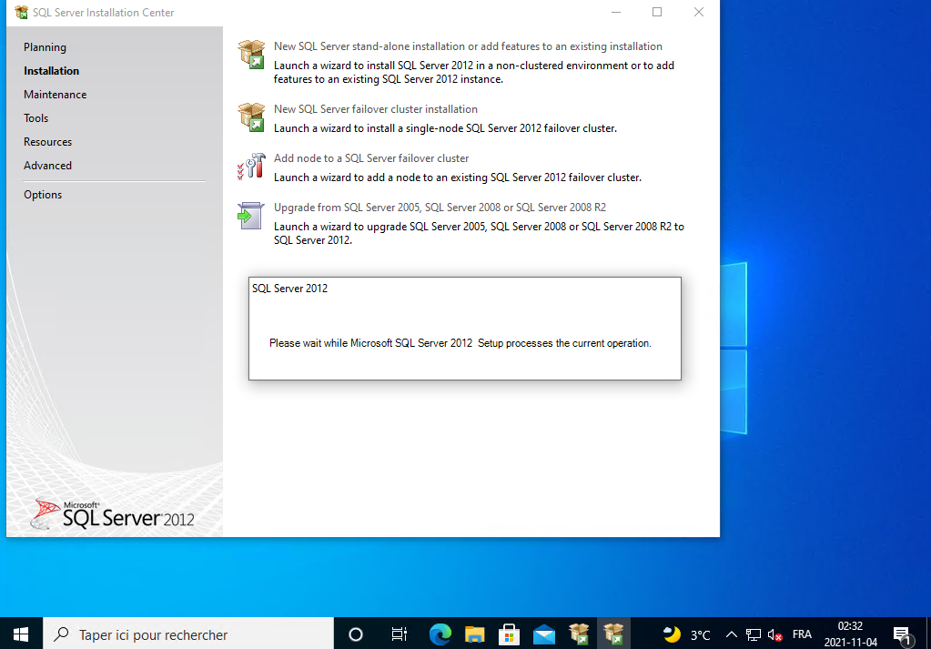 Il installe SQL Server 2012, vous le laissez continuer.