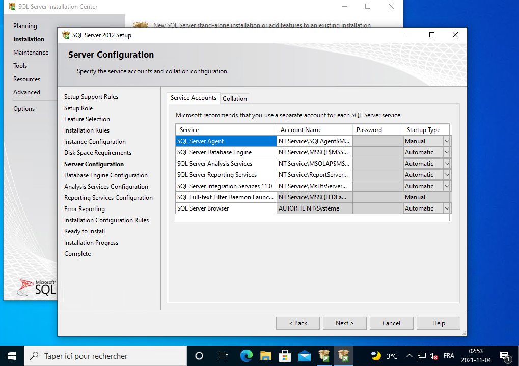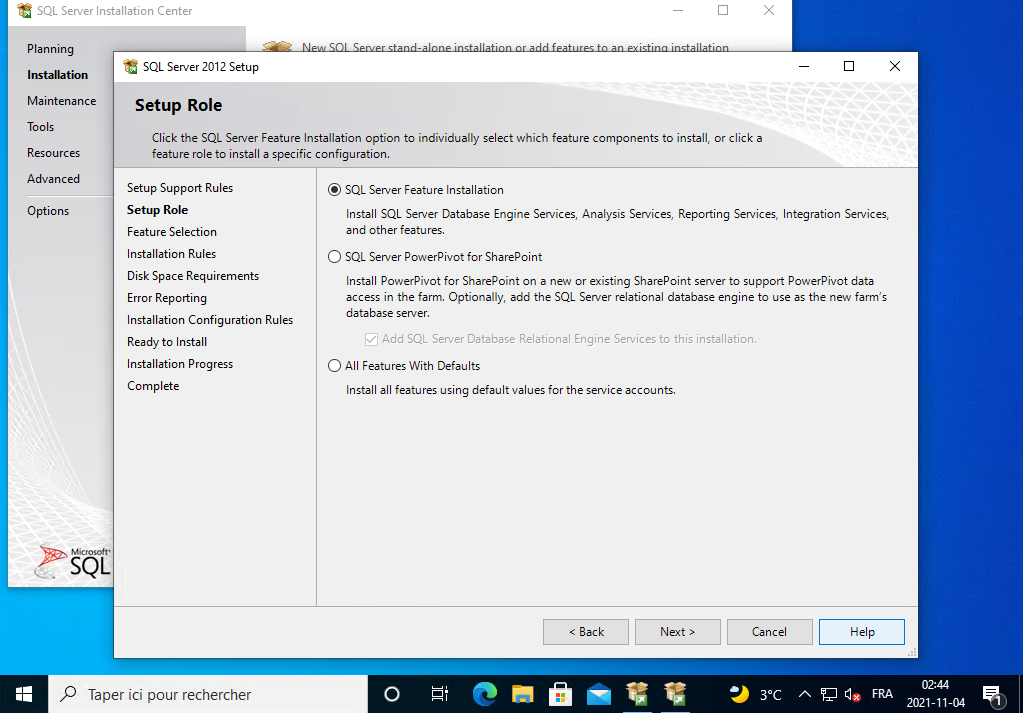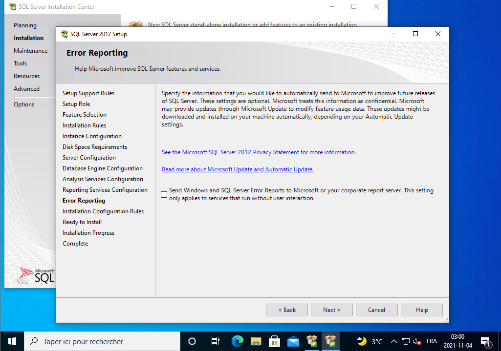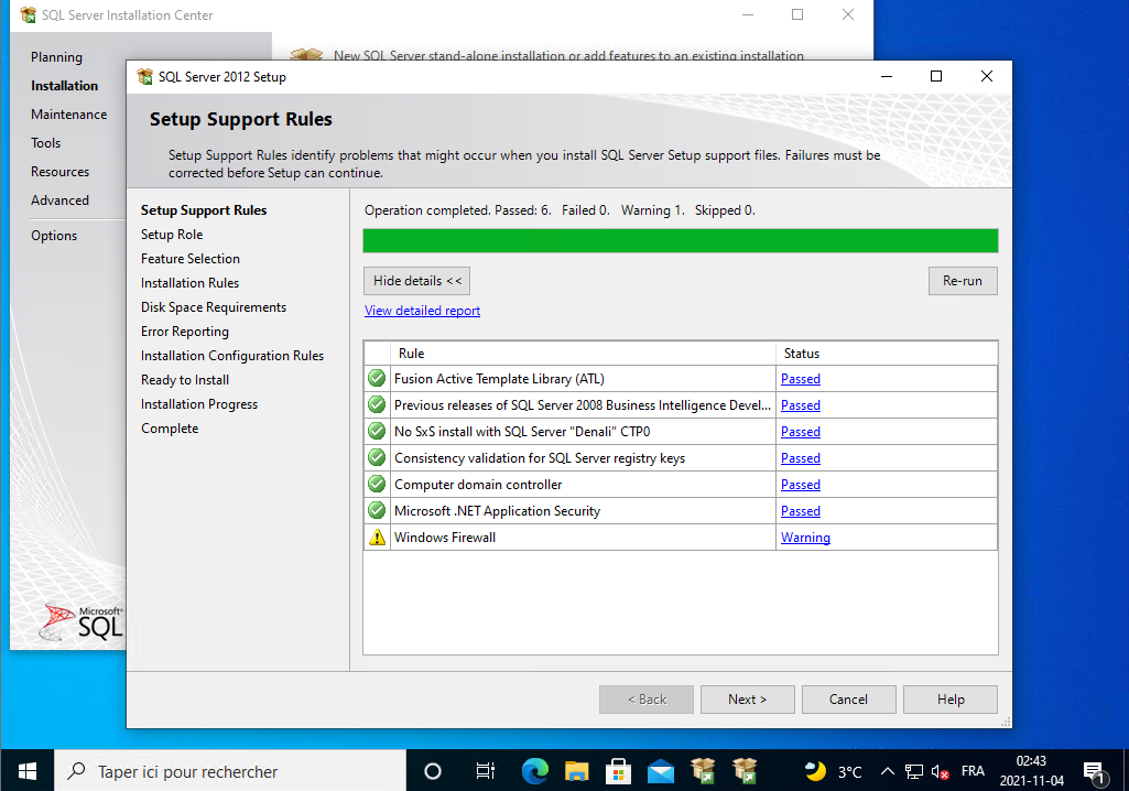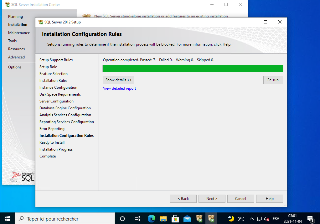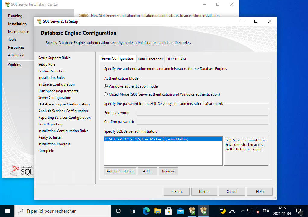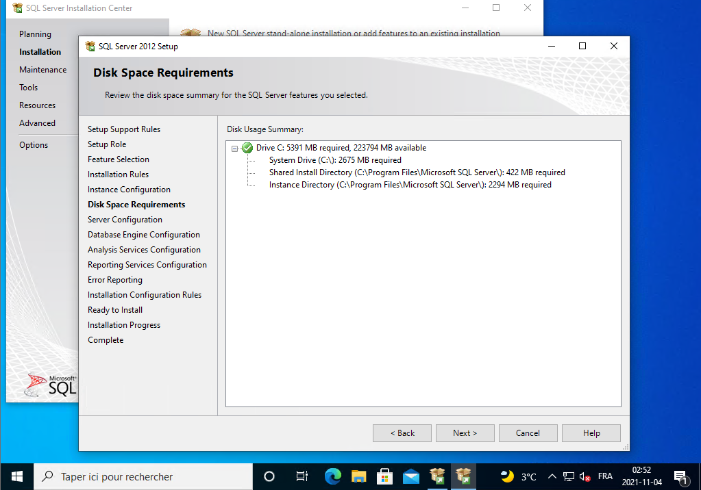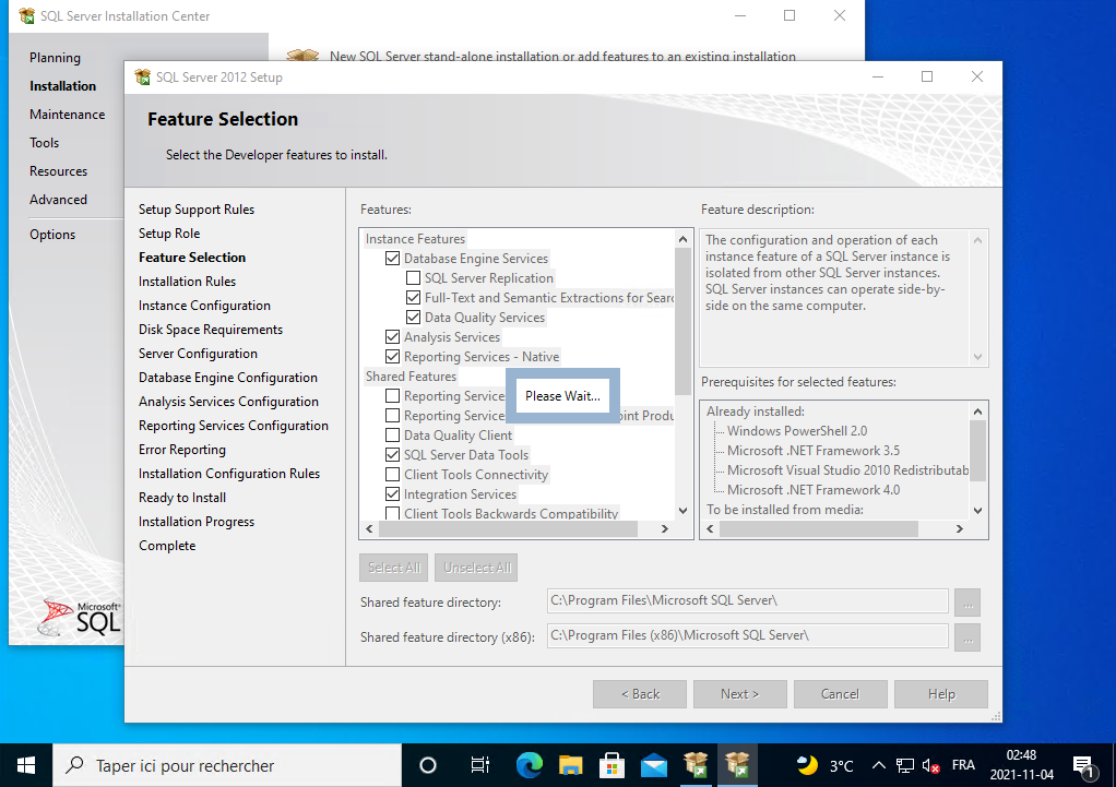 Il installe SQL Server 2012, vous le laissez continuer.