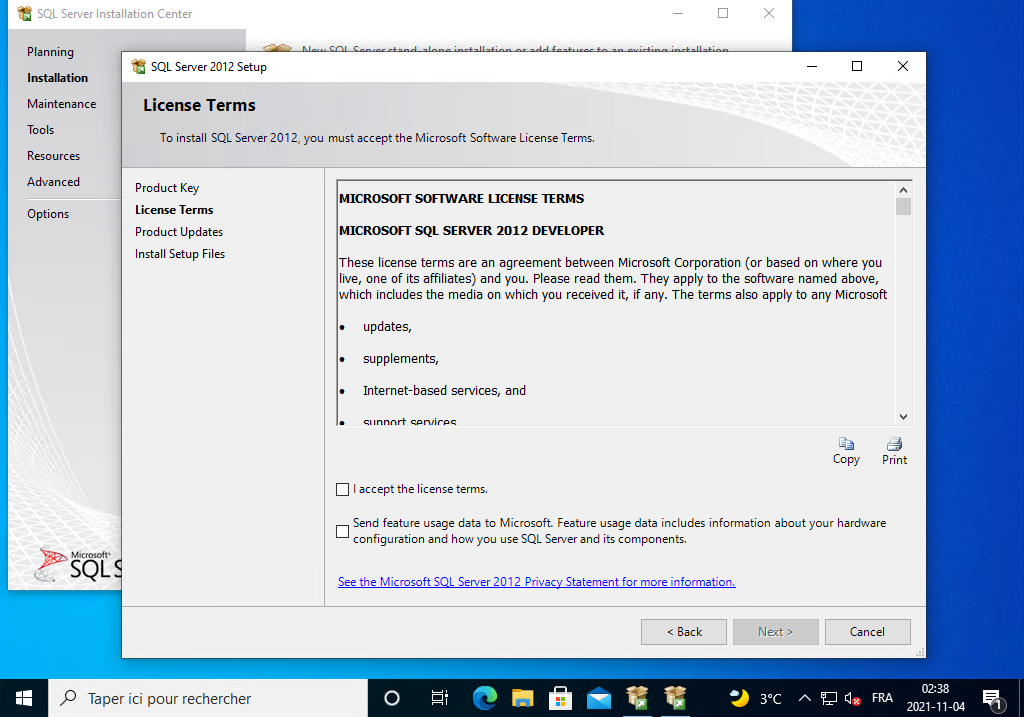 Installation de SQL Server 2012 Developer