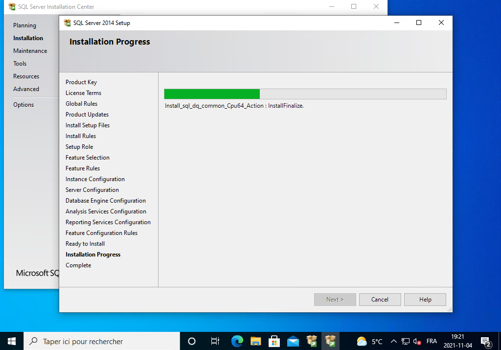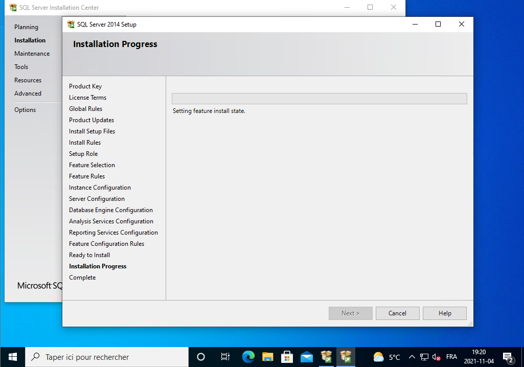 Voici les différentes étapes pour installer le SQL Server 2014 Developer sous le système d'exploitation Windows 10. Tout d'abord, mettre le CD-ROM dans le micro-ordinateur et lancer le disque. Il apparaîtra une boite de dialogue de chargement du Microsoft SQL Server 2014 au bout de quelques instants :