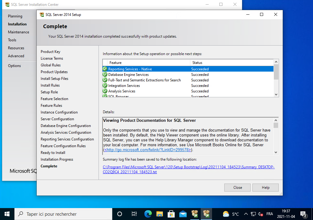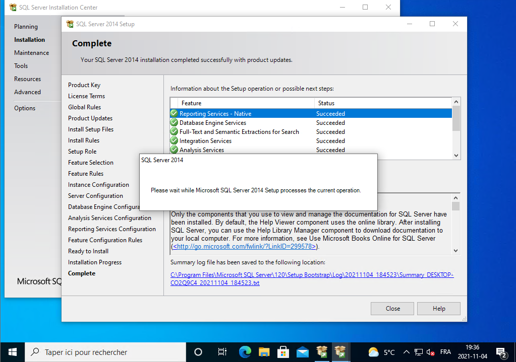 L'installation est terminé, vous cliquez sur le bouton Close :