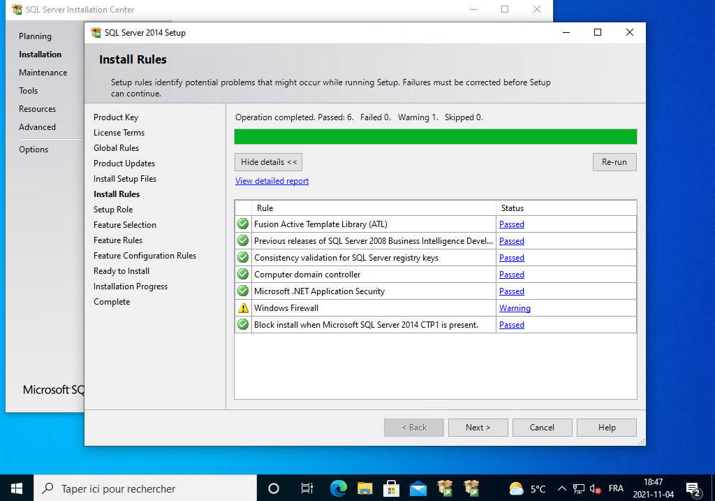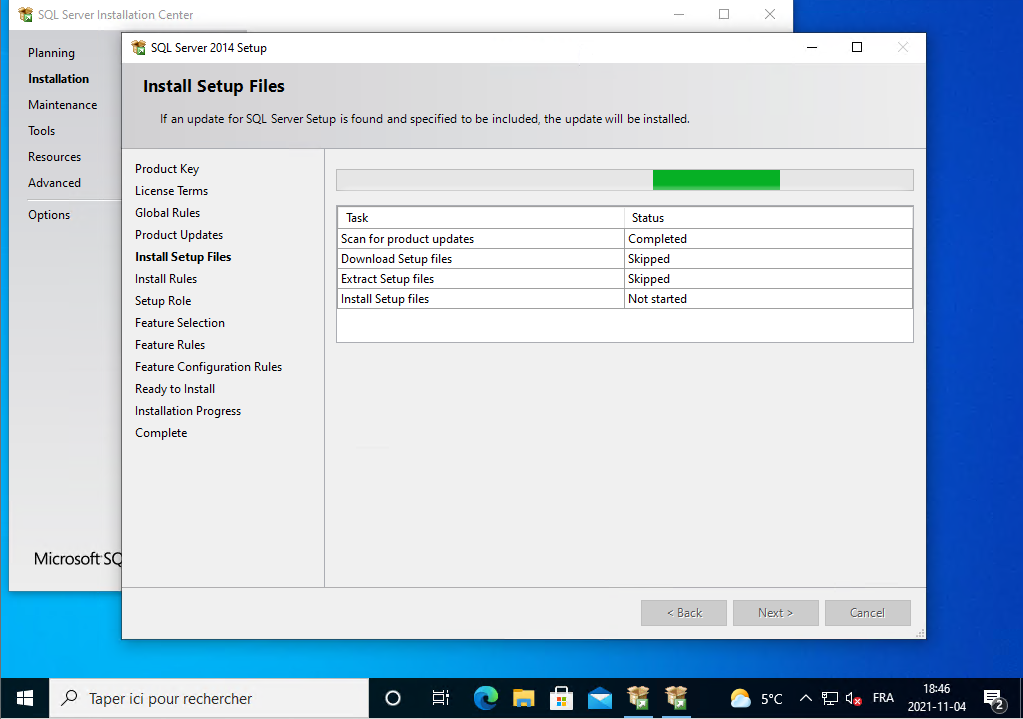 Il vérifie l'état de l'installation, vous le laissez continuer.