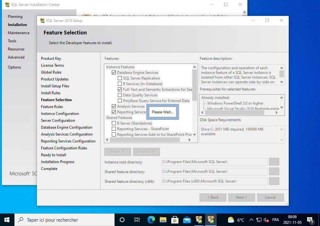 Il affiche des options de personnalisation d'installation, vous cocher «Full-Text and Semantic Extractions for Search», «Analysis Services», «Reporting Services - Native», «SQL Server Data Tools» et «Integration Services» et vous cliquez sur le bouton Next :