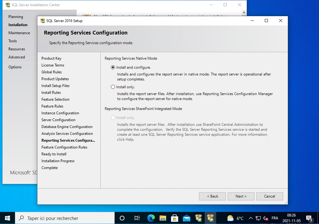 Vous sélectionnez le bouton radio «Install and configure» et vous cliquez sur le bouton Next :