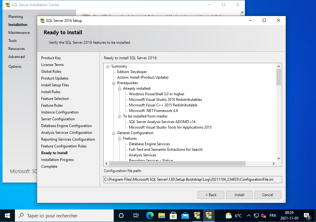 Il affiche une résumé de l'installation, vous cliquez sur le bouton Install :