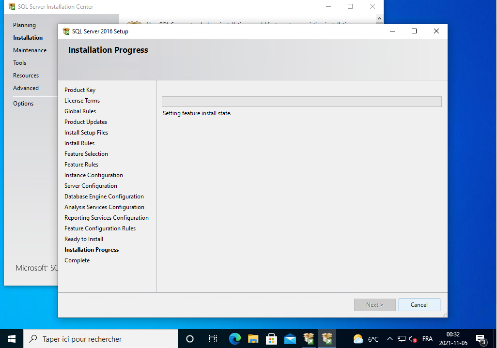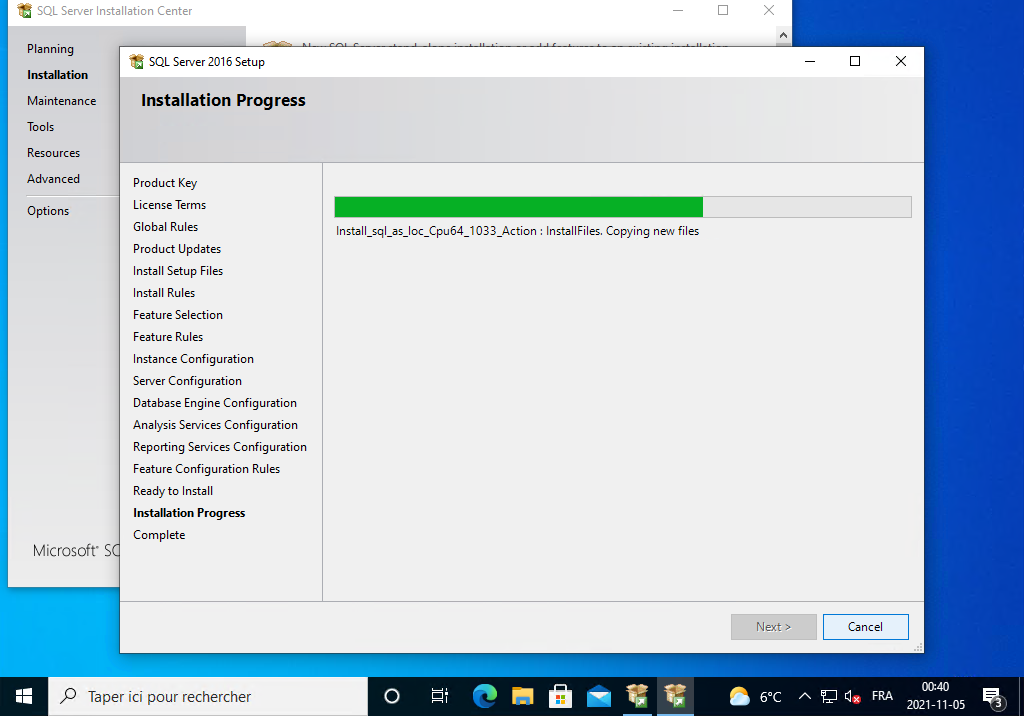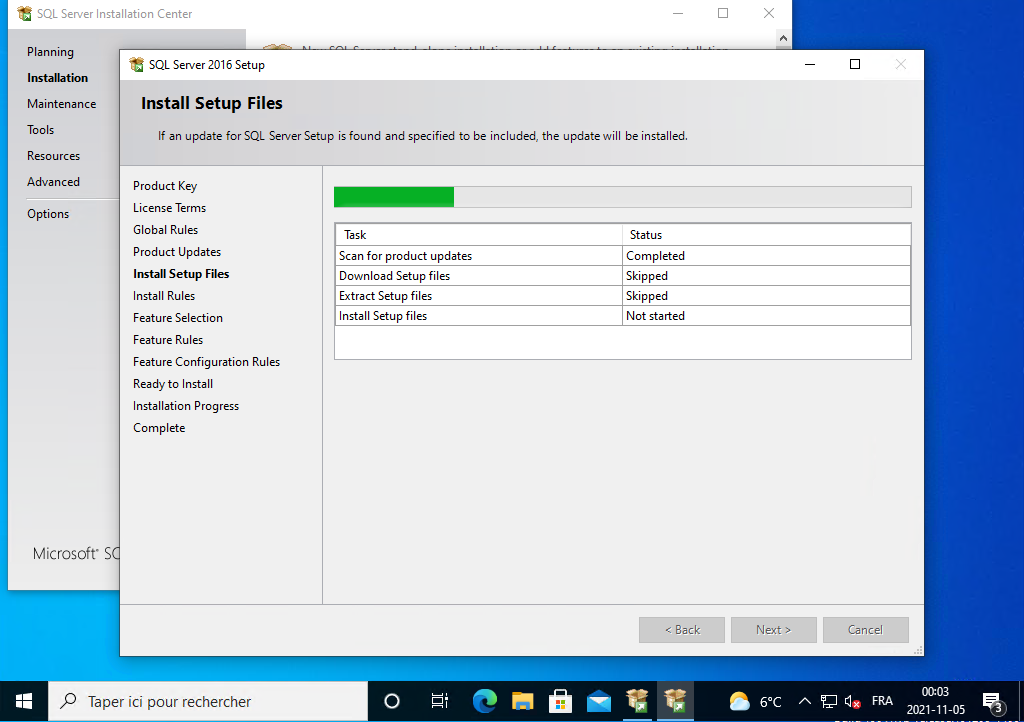 Voici les différentes étapes pour installer le SQL Server 2016 Developer sous le système d'exploitation Windows 10. Tout d'abord, mettre le CD-ROM dans le micro-ordinateur et lancer le disque. Il apparaîtra une boite de dialogue de chargement du Microsoft SQL Server 2016 au bout de quelques instants :