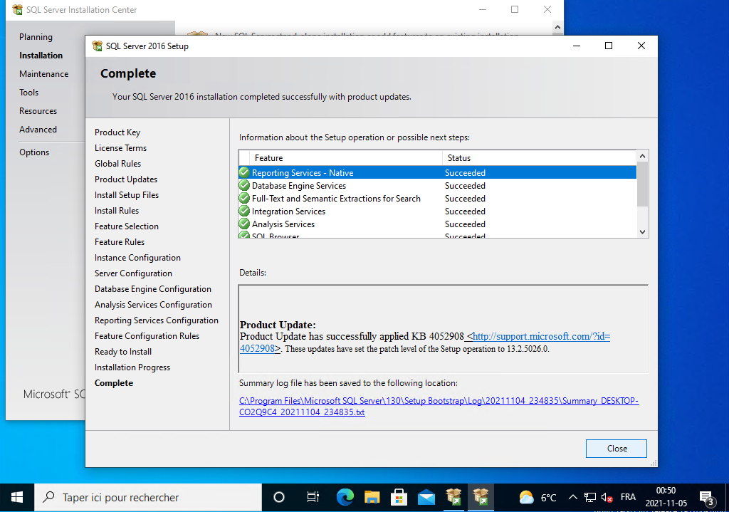 L'installation est terminé, vous cliquez sur le bouton Close :