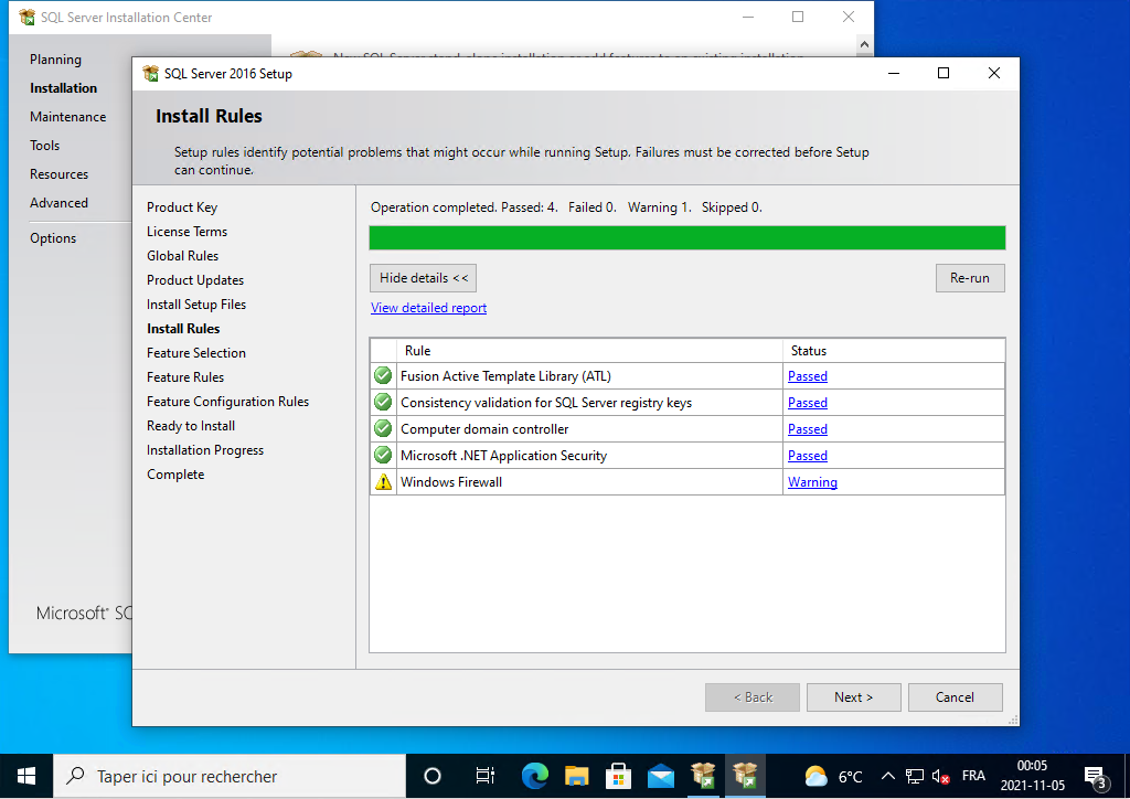 Il vérifie l'état de l'installation, vous le laissez continuer.