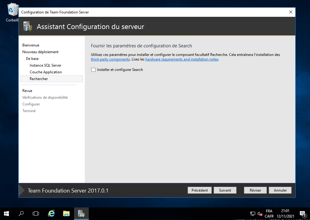 Il vous demande s'il doit installer les fonctionnalités de recherche, vous cliquez sur le bouton Suivant :