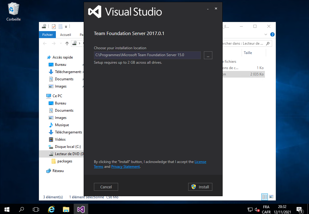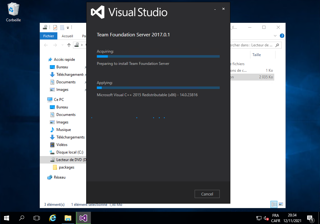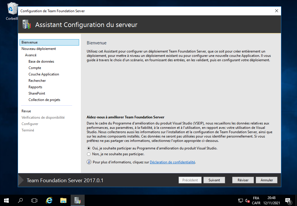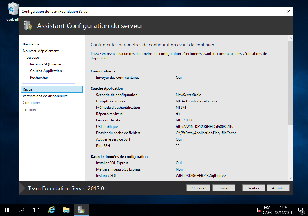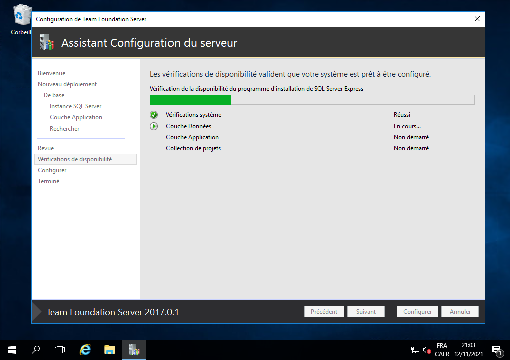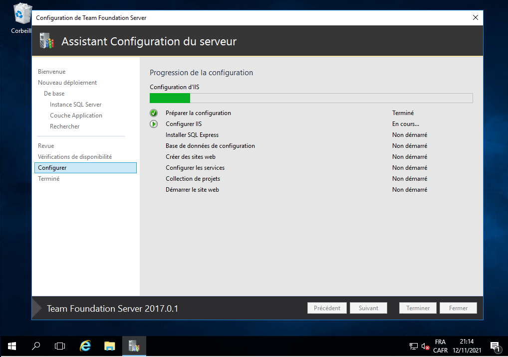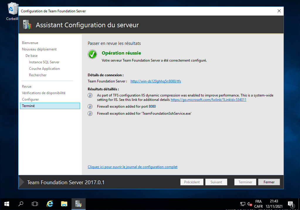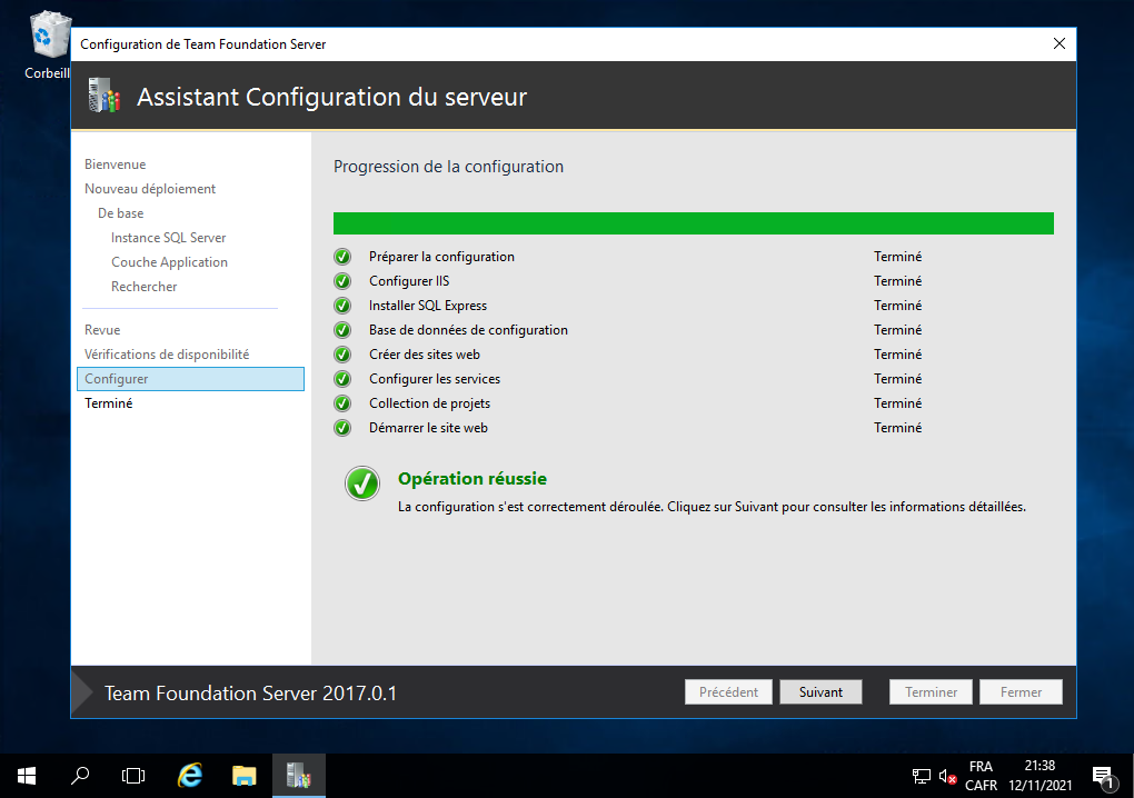 Il installe ensuite le Team Foundation Server, vous le laissez continuer.