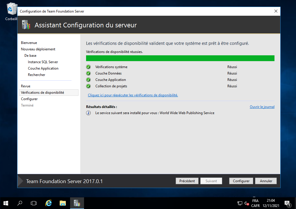 La vérification est terminé, vous pouvez cliquez sur le boutons Configurer :