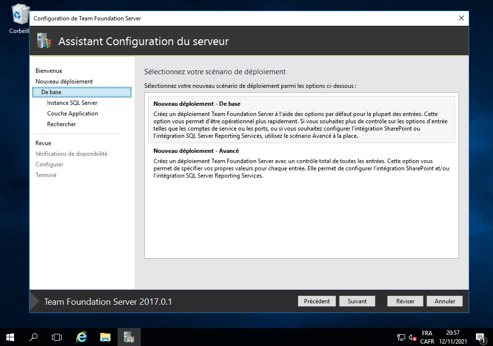 Vous cliquez sur la case «Nouveau déploiement - De base» et vous cliquez sur le bouton Suivant :