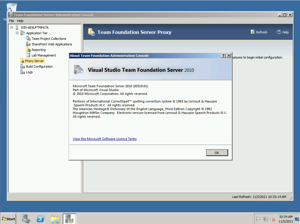 | TFS 2010 | Windows Server 2008 R2 (Standard, Enterprise, Datacenter) Windows Server 2008 (minimum SP2) Windows Server 2003 R2 Windows Server 2003 (minimum SP2) |