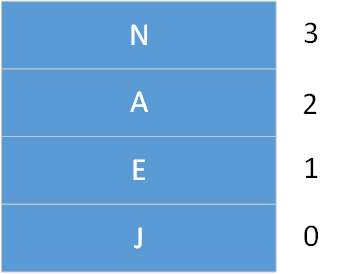 Nous mesurons la mémoire de l'ordinateur en unités appelées octets. Un octet est assez de mémoire pour contenir un caractère de l'alphabet, comme la lettre J. Voici un segment de mémoire contenant le mot "Jean" :