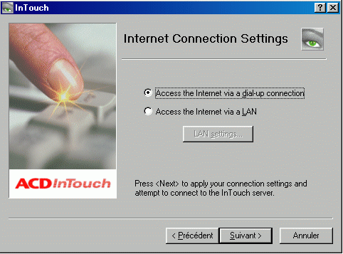 On demande la méthode d'envoi d'enregistrement, par téléphone (modem) ou modem câble, DSL, réseau (LAN)