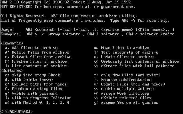 | ARJ Version 0.13a ALPHA | Décembre 1990 |