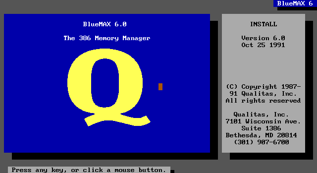 Le logiciel BlueMAX est un gestionnaire de mémoire permettant de faire fonctionner le système plus rapidement et d'exécuter les programmes de manière fluide. Le logiciel BlueMAX était une version spéciale conçue pour le PS/2 d'IBM avec une compression ROM pour tirer le meilleur parti des blocs de mémoire supérieurs.