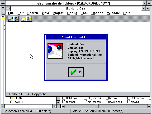 Le logiciel Borland C++ 4.0 est le troisième compilateur C++ dans la série Borland C++ proposé par Borland. Le support du DOS est totalement retiré, il uniquement possible de construire des applications pour Windows 3.1 maintenant. Par contre, le cadre d'application OWL 2.0 est inclus. Le Borland C++ 4.0 est le successeur du Borland C++ 3.1.