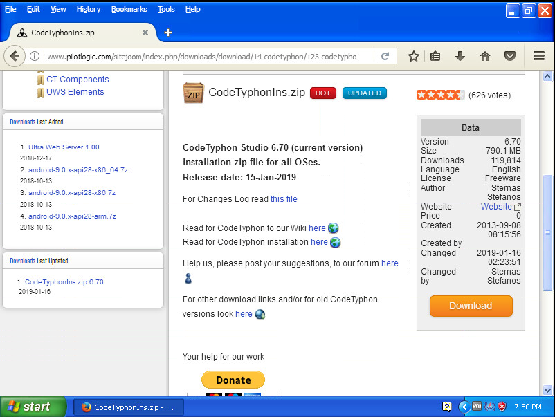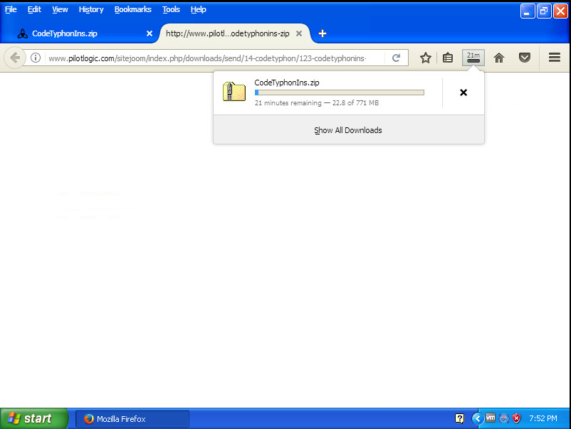 Pour installer CodeTyphon Studio sous Windows XP, vous devez d'abord aller sur le site Web http://www.pilotlogic.com/sitejoom/index.php/downloads/category/14-codetyphon et cliquez sur le bouton «CodeTyphonIns.zip» :