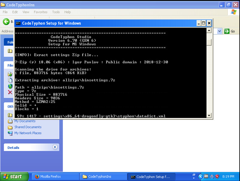 Il commence à extraire les fichiers de l'IDE de Typhon. Vous le laissez continuer.