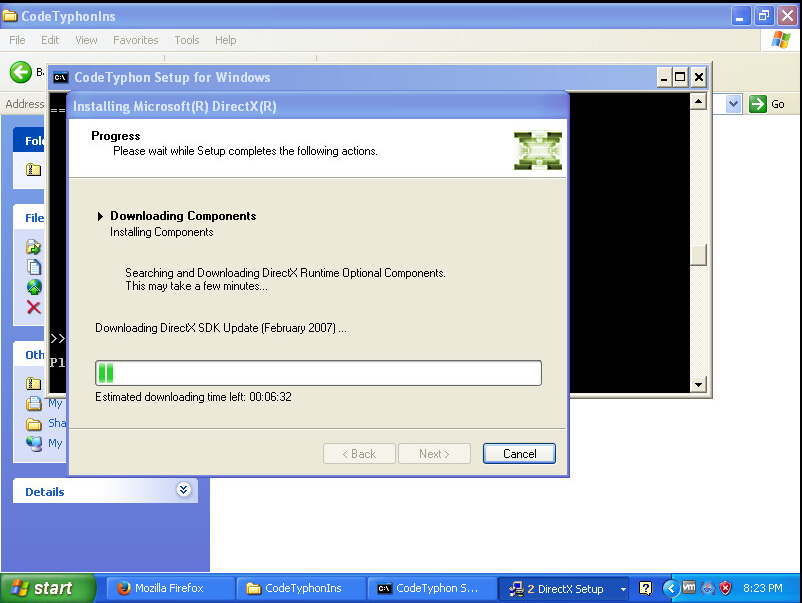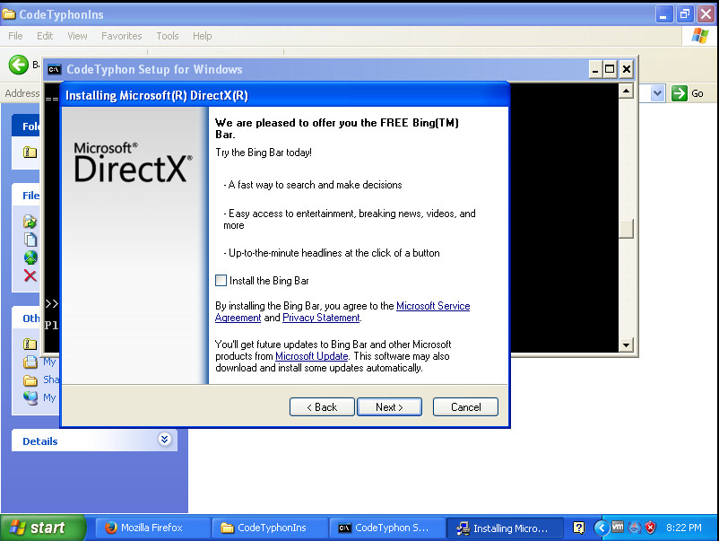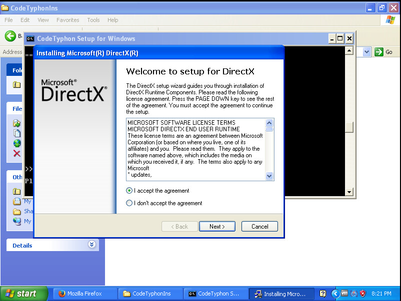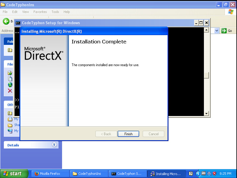 Il commence à initialiser l'installation de DirectX. Vous le laissez continuer.