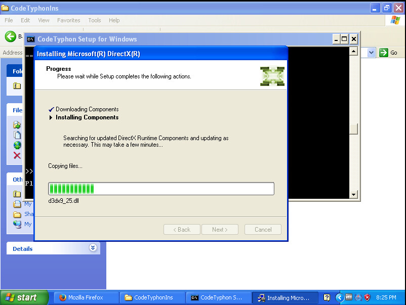 Il copie les fichiers de DirectX. Vous le laissez continuer.