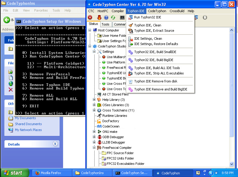 Cliquez sur le menu «Typhon-IDE». Ensuite cliquez sur l'option «Typhon 32 IDE, Build SmallIDE» :
